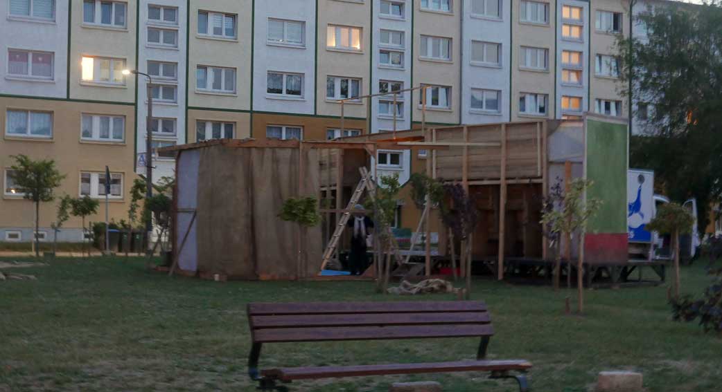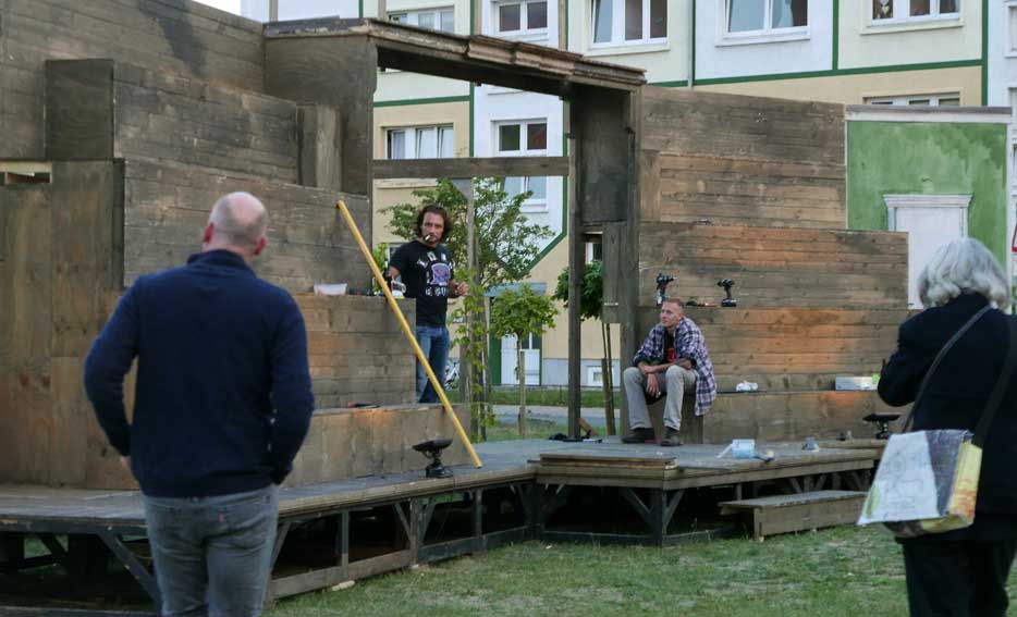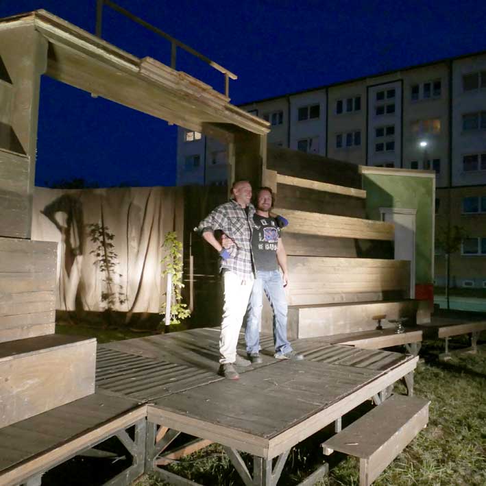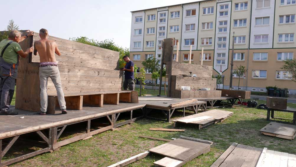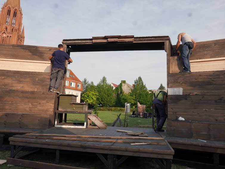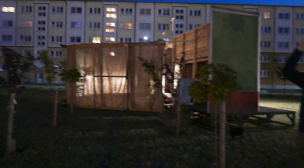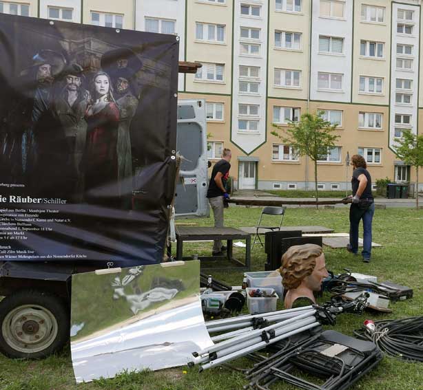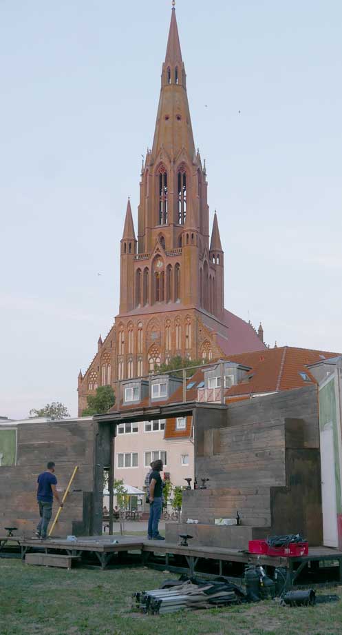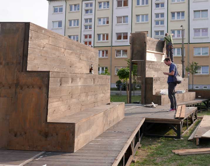 die Teile des Untergrunds kommen aus dem ehemaligen SchillerTheater in Berlin, das vor 25 Jahren geschlossen wurde. Das Haus Becketts und Kortners. als wir beschlossen das Theater nie mehr.