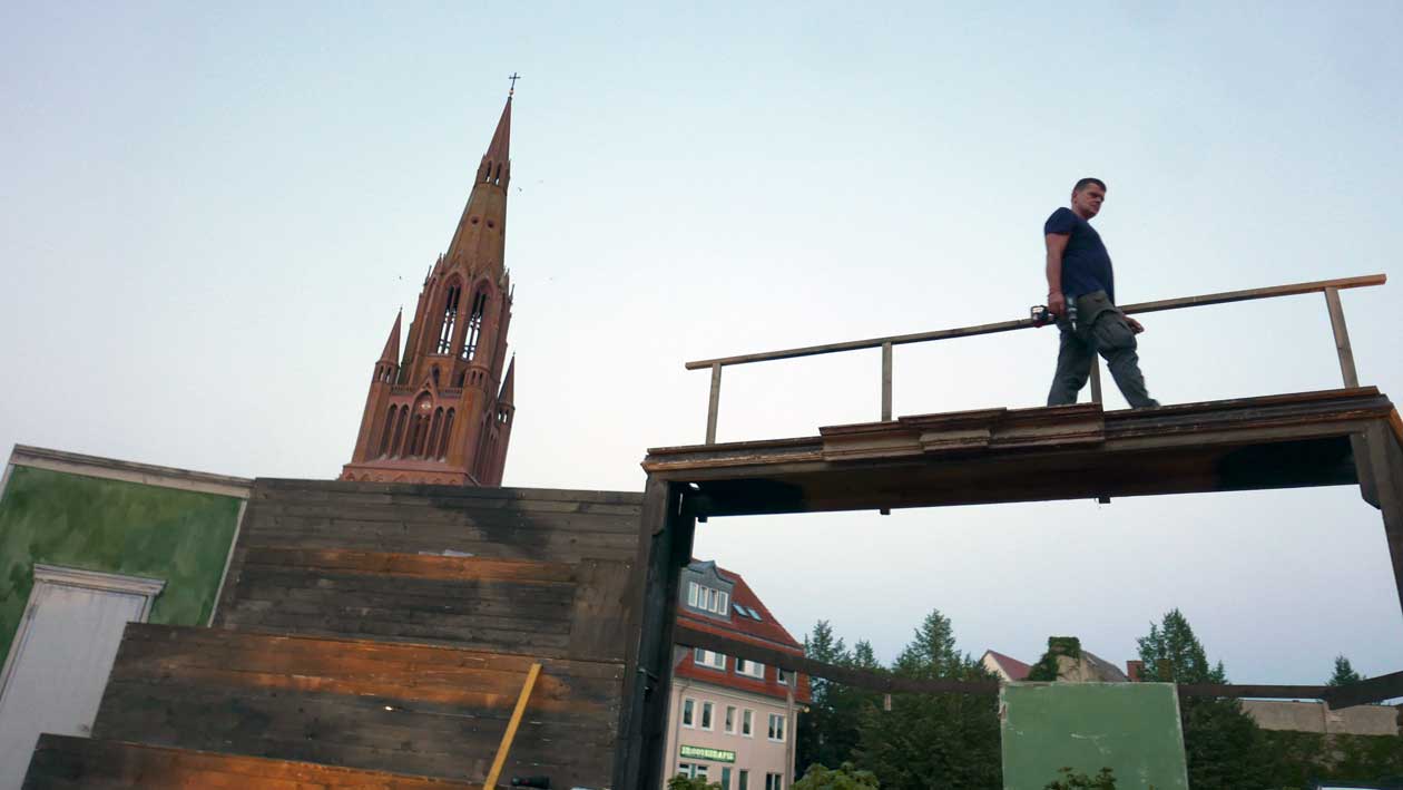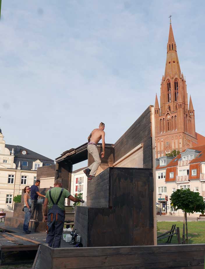 mitten auf den Marktplatz, dort wo die Ruinen unter der Erde auf Erlösung warten
