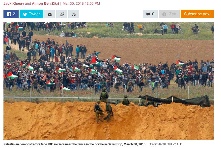 IDF says tank shells two Palestinians approaching border ? Five Palestinians wounded in separate incidents ? Thousands en route to mass protests along Gaza border