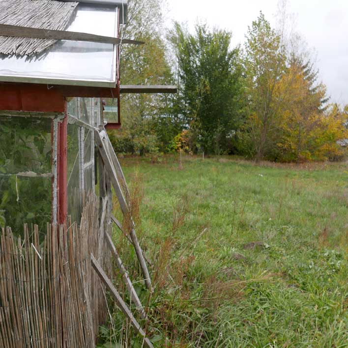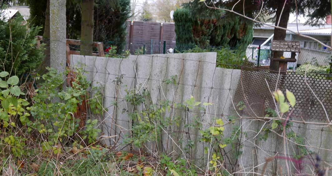 wie zum sozialisten Dorf der Plattenbau und das Rohr, das das Wassen von den Seiten nicht aufnimmt, aus Beton, statt natürliche Gräben,