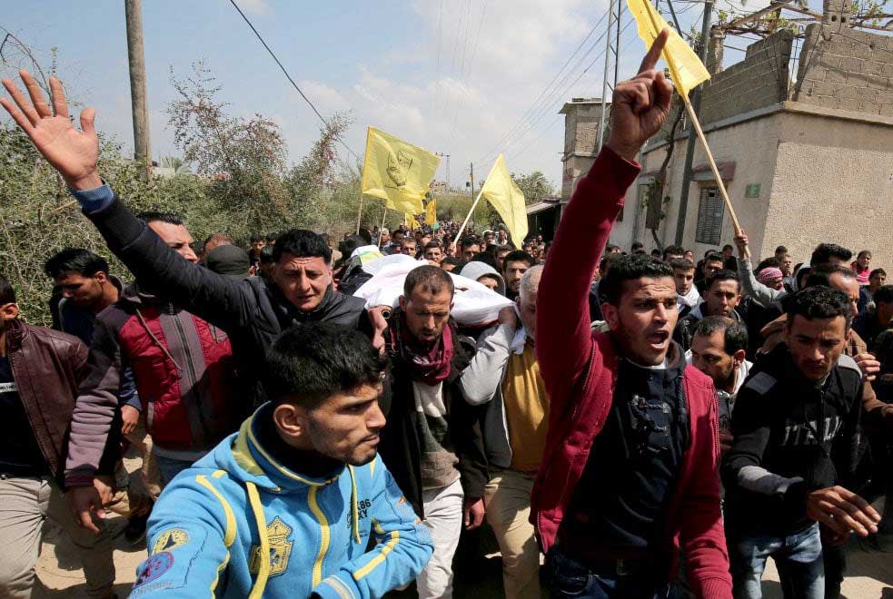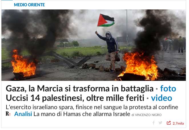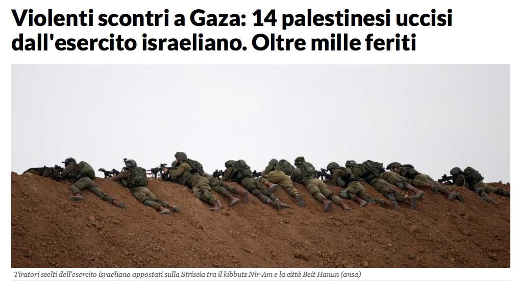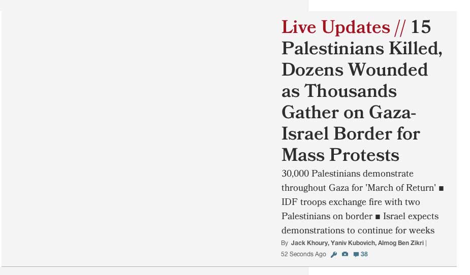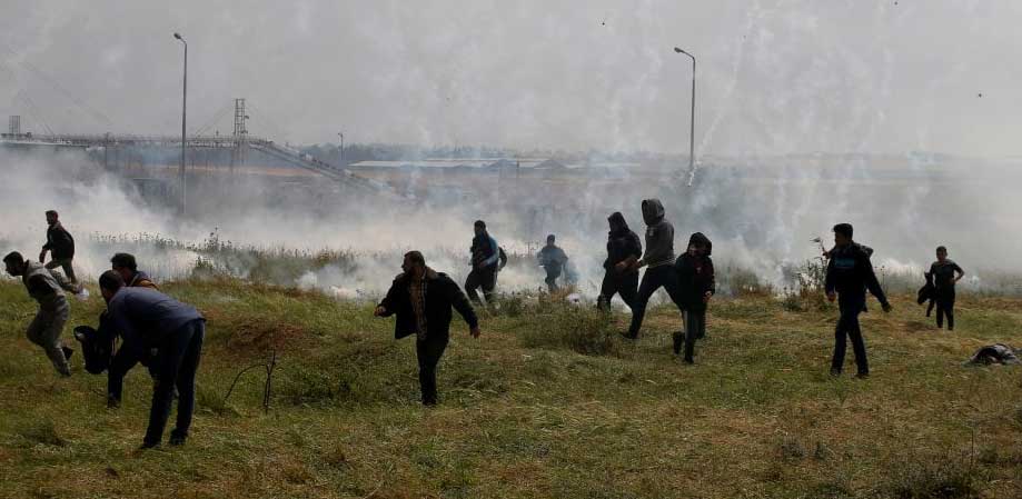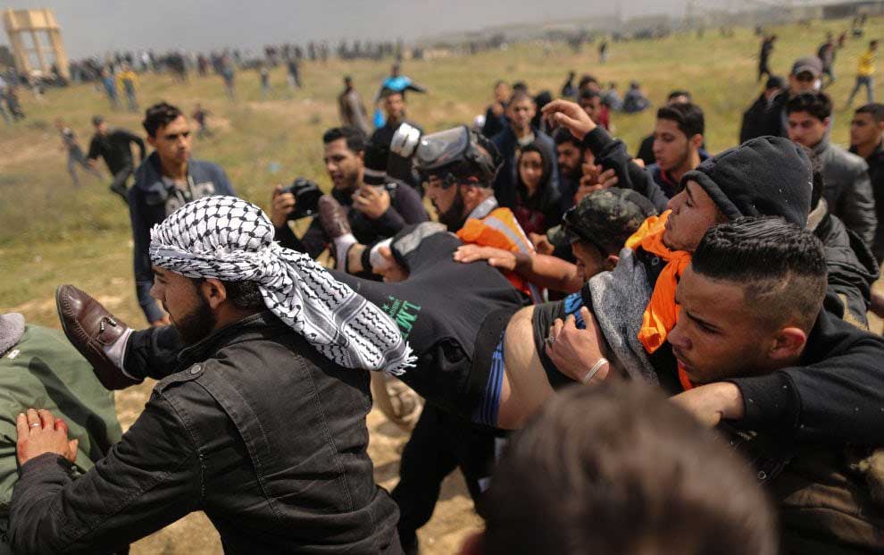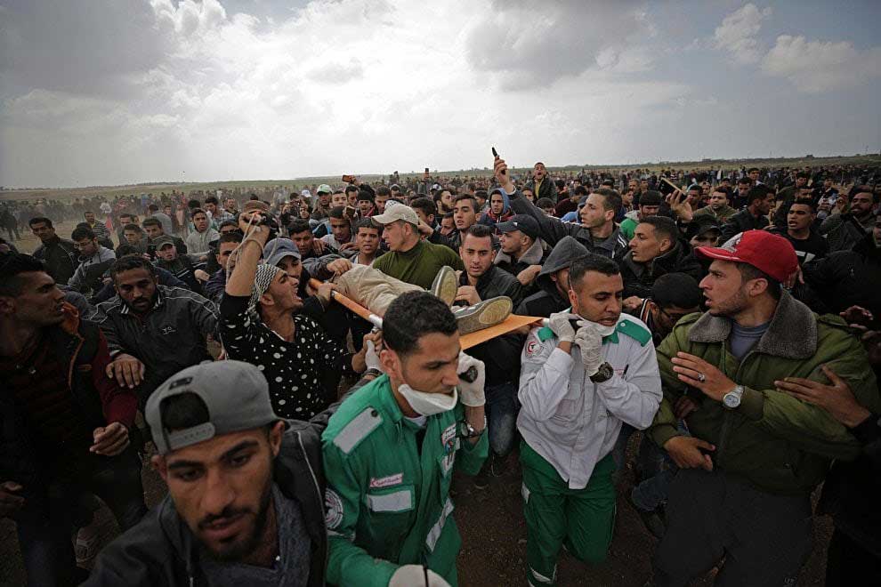 Nachdem sich einzelne Palästinenser der Sperranlage näherten, Reifen in Brand setzten und Steine warfen, eröffneten israelische Sicherheitskräfte das Feuer mit scharfer Munition. Bis zum Nachmittag wurden dabei mindestens sieben palästinensische Männer getötet; am Abend wurde die Zahl nach oben korrigiert - es wurde bekannt, dass mindestens 16 Menschen getötet wurden. Das jüngste Todesopfer war 16 Jahre alt. Das palästinensische Gesundheitsministerium teilte am Abend mit, rund 1100 Menschen seien verletzt worden.