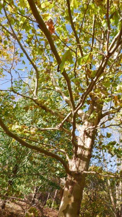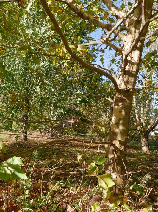 im Vergleich auf linker Seite mit den Bäumen hoch geschoren ohne Schutz