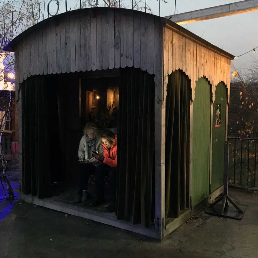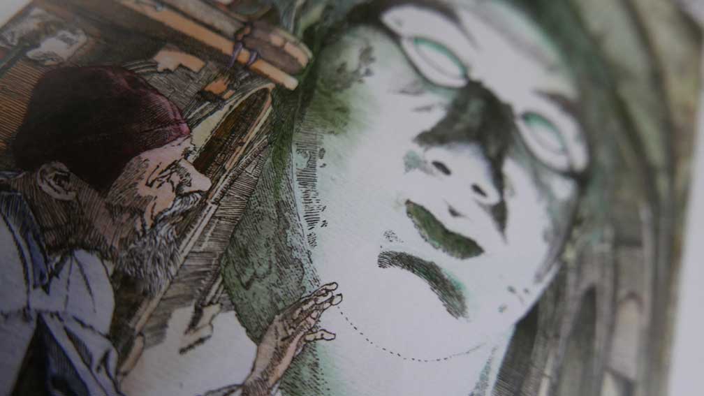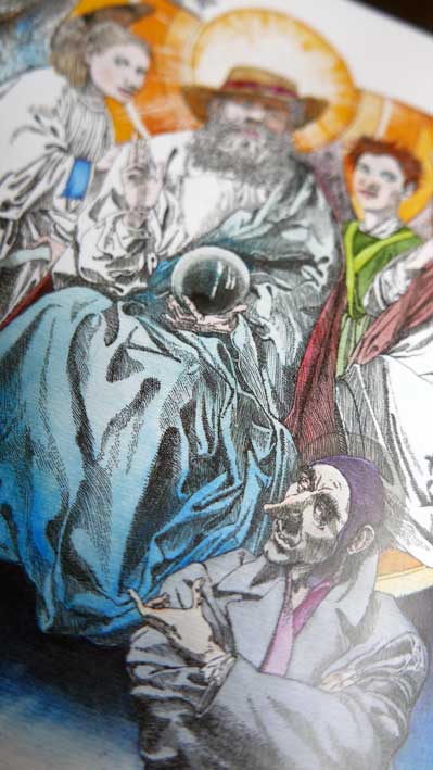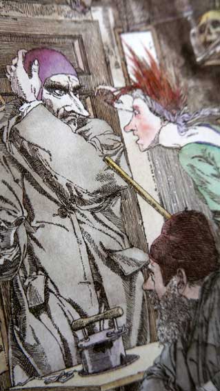 ein Faust ähnlich der Puppenspiele den Kindern erzählt.