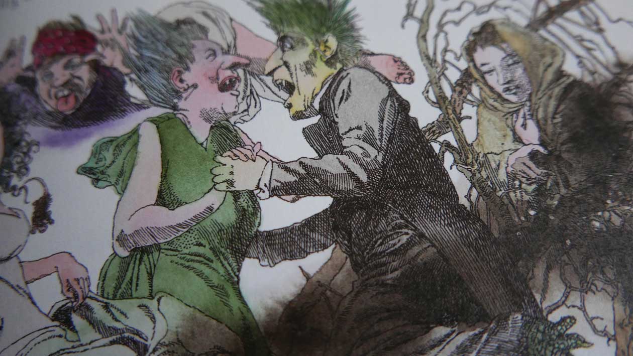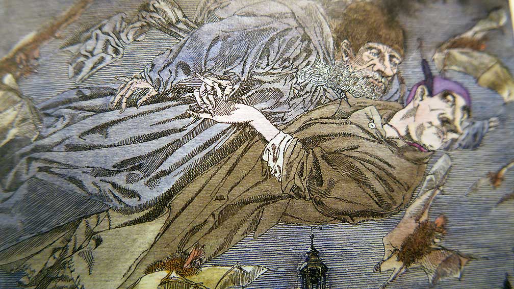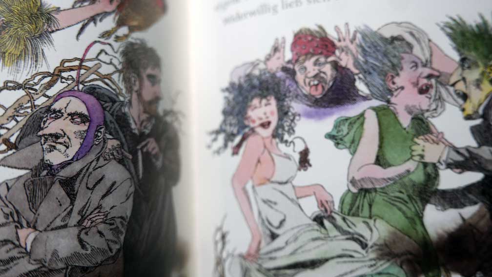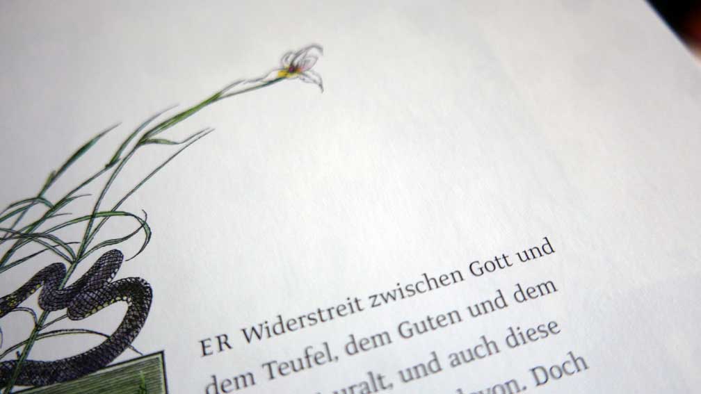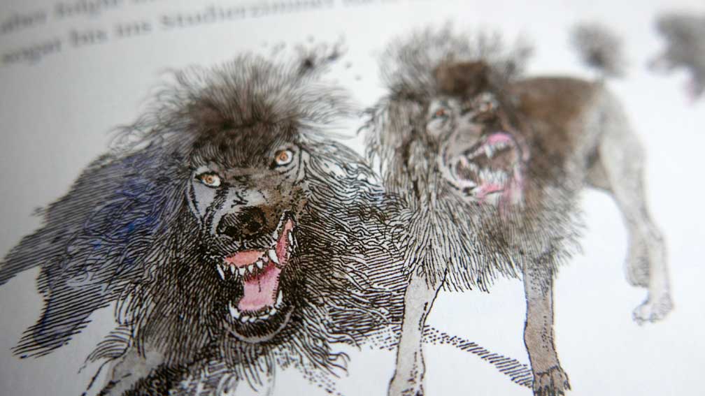 und nach alter Puppenspiel-Art kommt er rein, in Gestalt eines Hundes, der Teufel selbst sich entpuppend bis zum Pakt