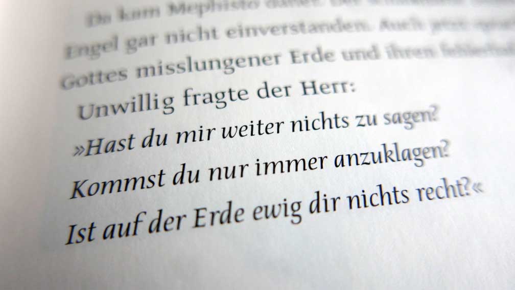 und wie der Teifel sich aufmacht hinab sich aussucht den alten Faust wie da hockt und brütet, beschwört und räsonniert, studiert...