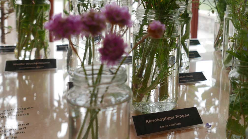 Das Heimat-Museum auf Hiddensee zeigt die wildwachsenden Pflanzen der Insel mit Namensschildern, und in latein, den Kindern wie den Grossen. Täglich zu erneuern.