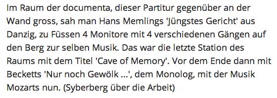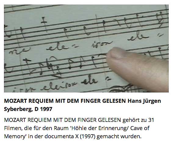 Nach einem Versuch alles mit einer Stimme zu riskieren, alle Chöre auch, die vom Mozart auf dem Totenbett selbst geschriebene Partitur mit dem Finger abzutasten, den Ton allein nur noch im Ohr. Zum Bild seiner Hand Schrift. So kamen wir her.