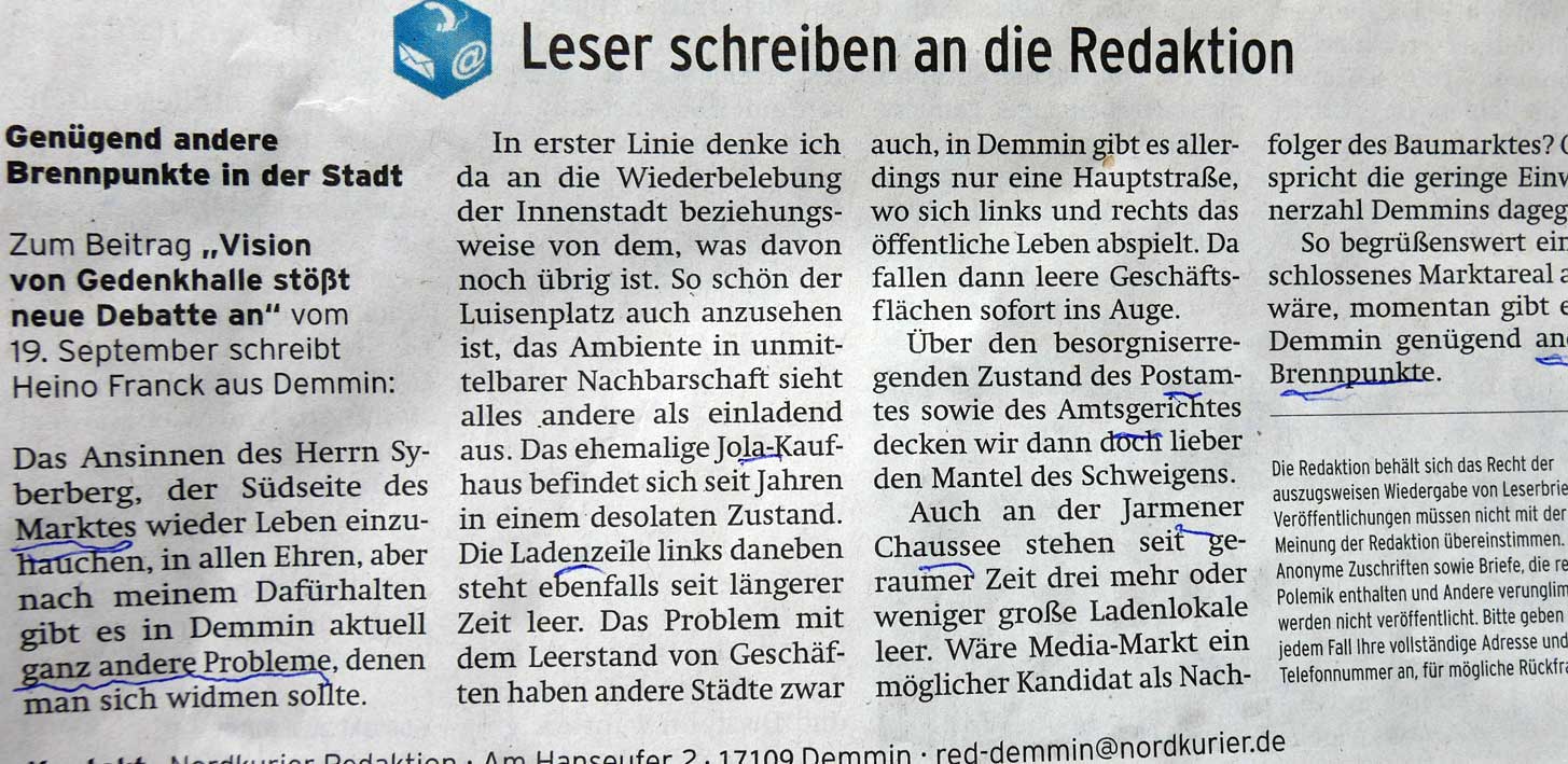 ohne Baumarkt und Zukunft, wer wollte das nicht beklagen. Aber alles in privater Hand ohne Zugriff šffentlicher