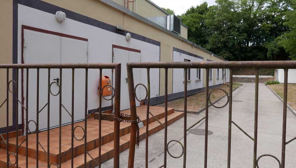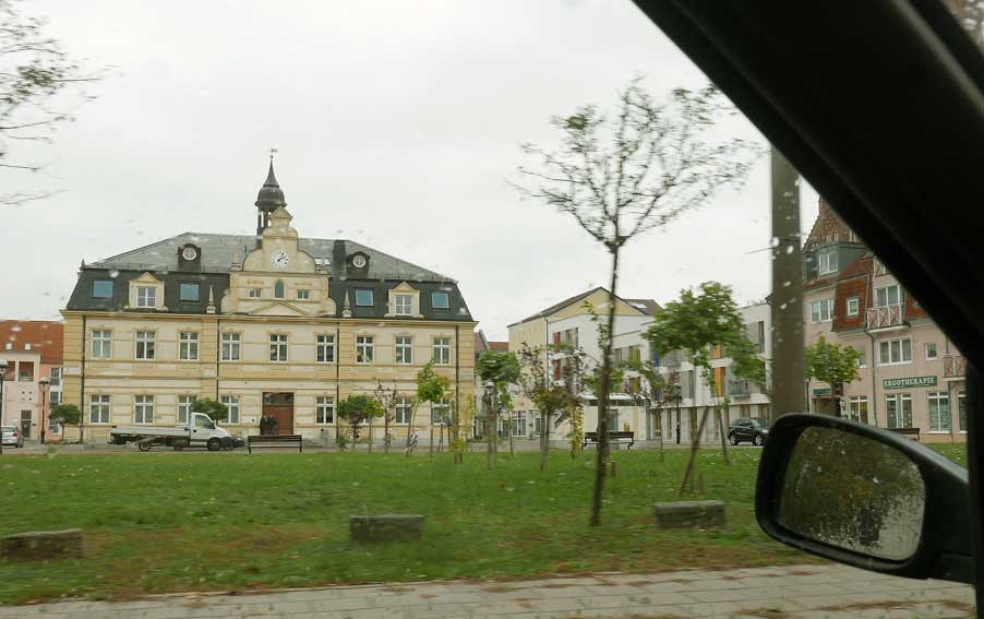 desolater Zustand des Postamts ohne Betrieb und das zugemauerte Amtsgericht, die Jarmener Chaussee
