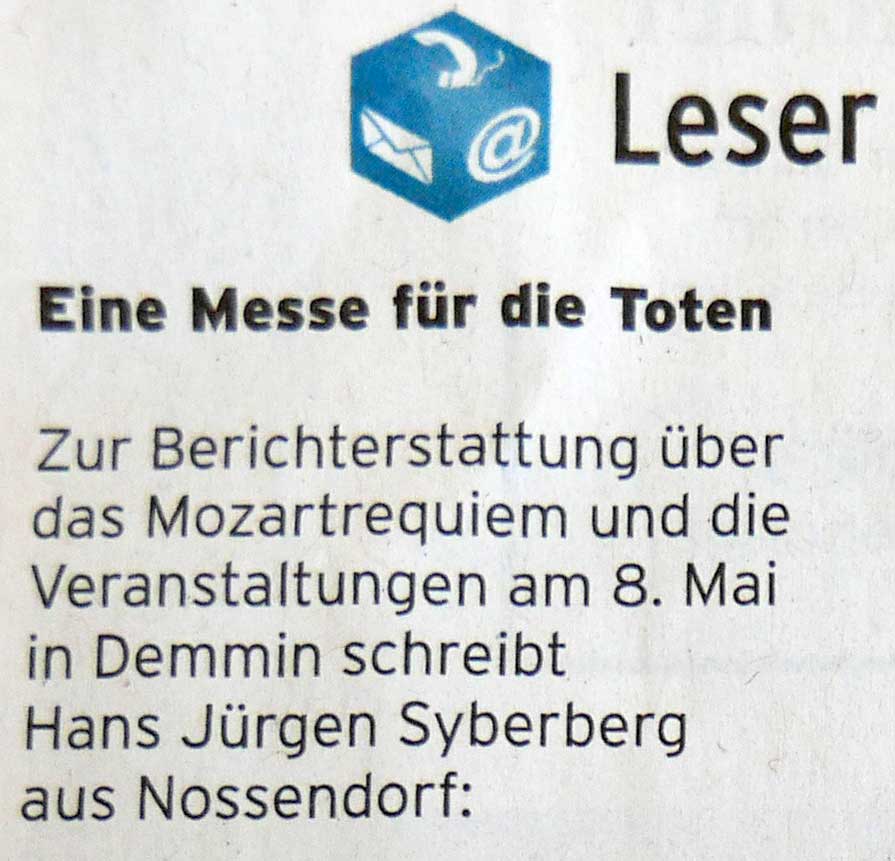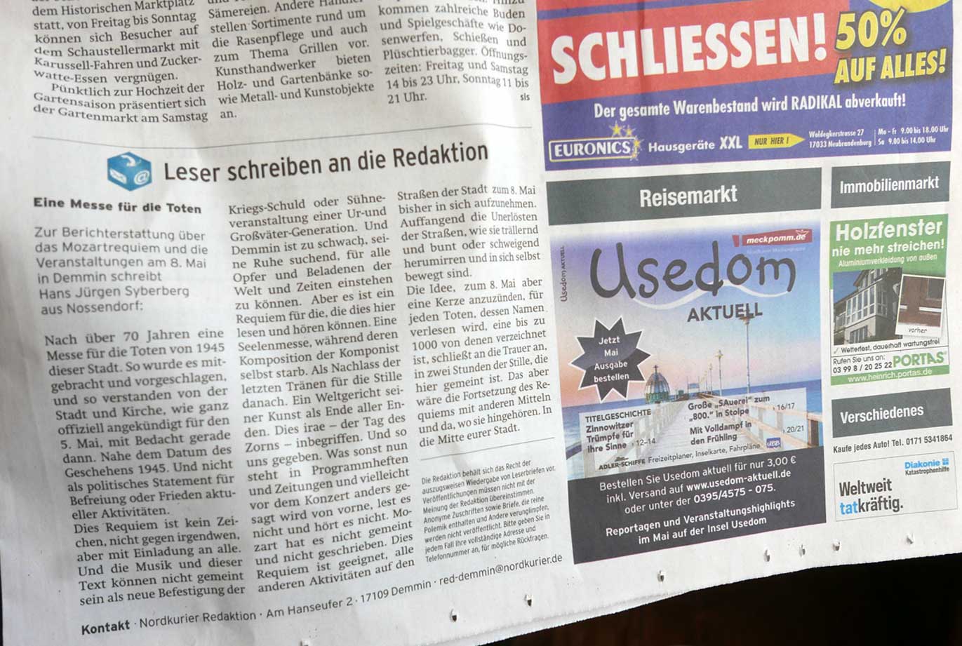 DIE ZEIT annoncierte in Demmin 2 Seiten zum Beginn des Sommers in Deutschland . Für viele Gäste.