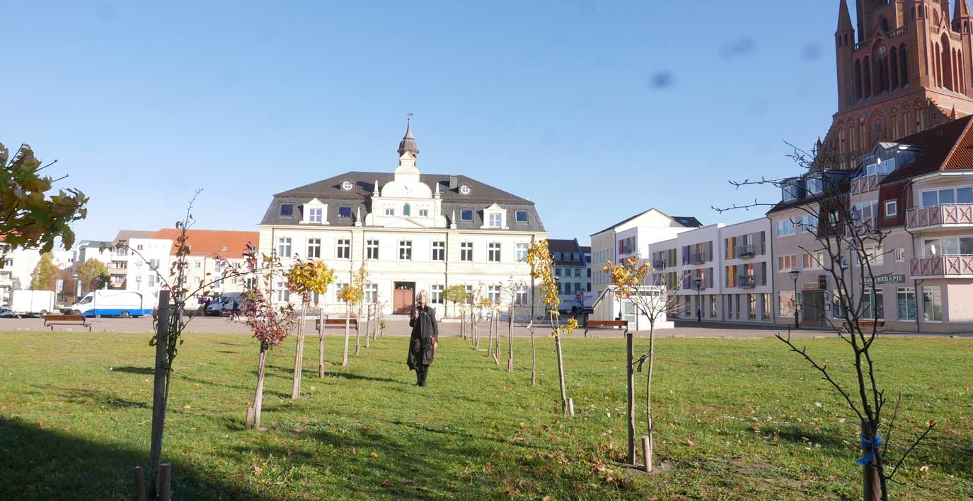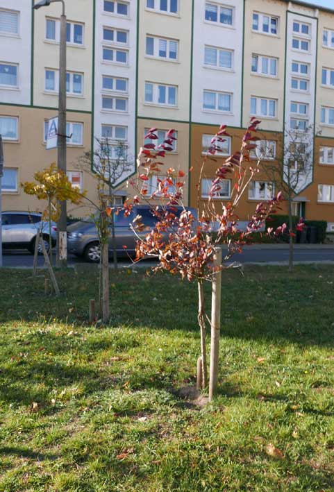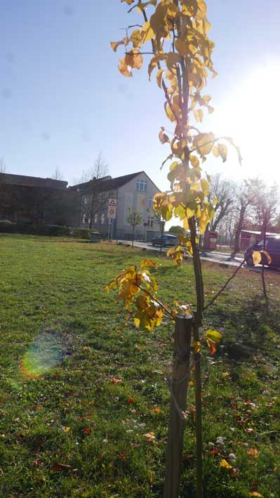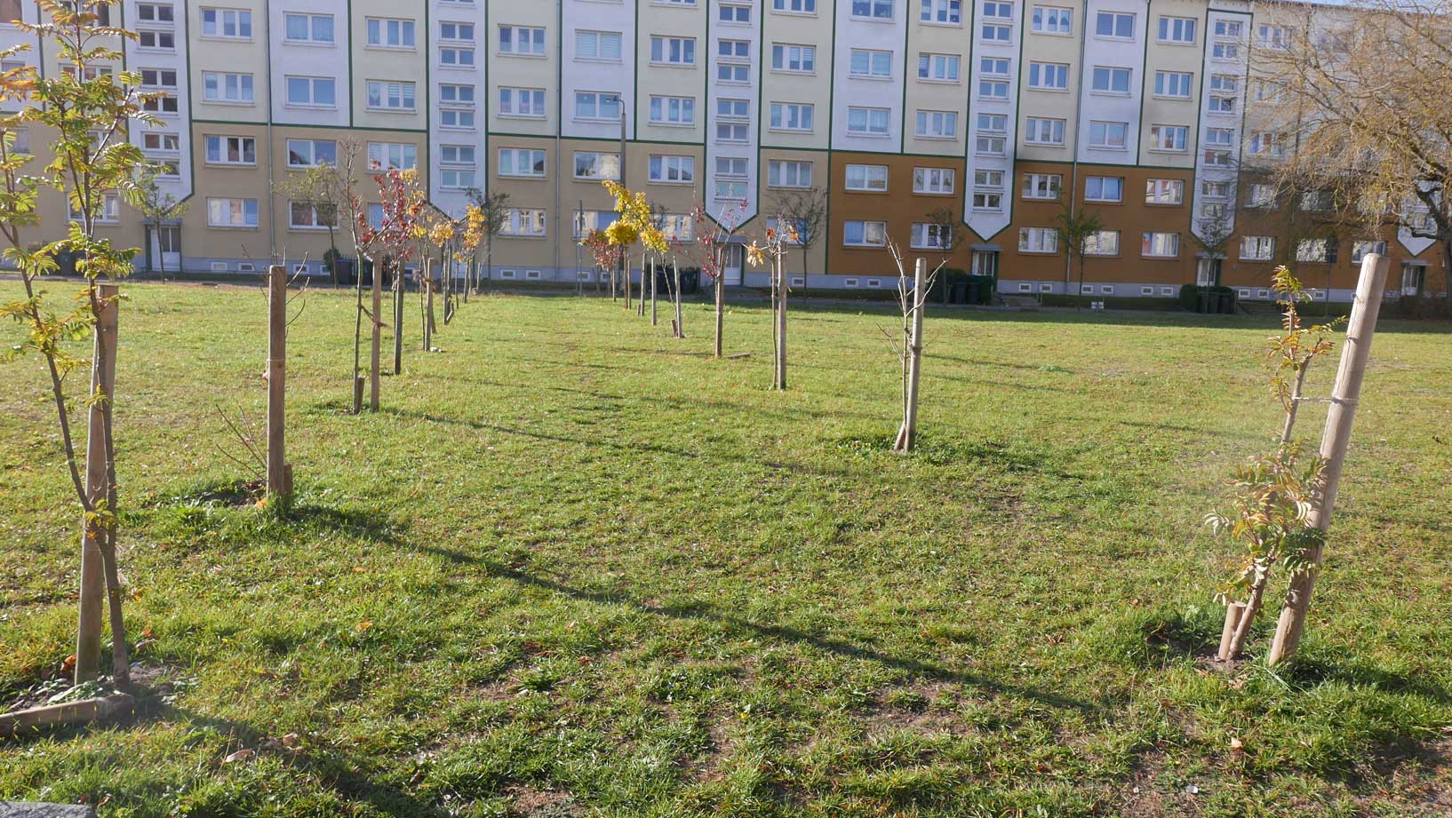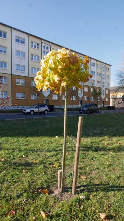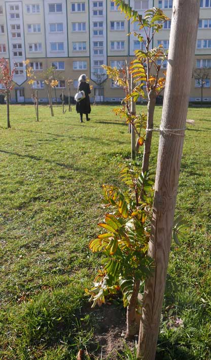 auch hier die Plattenbauten. Warum tun sie dem Auge hier weniger weh Senkrecht darauf zugehend. Von Baum zu Baum. geleitet. heiter und gewollt, von den Menschen selbst.