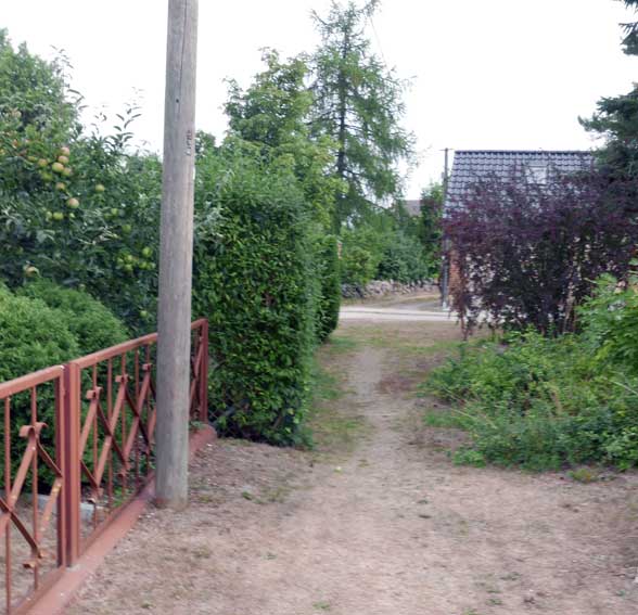 vorbeischleichend hinter Gärten zwischen Hecken und kommen sie ins Weite offen nach Haus