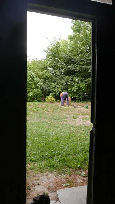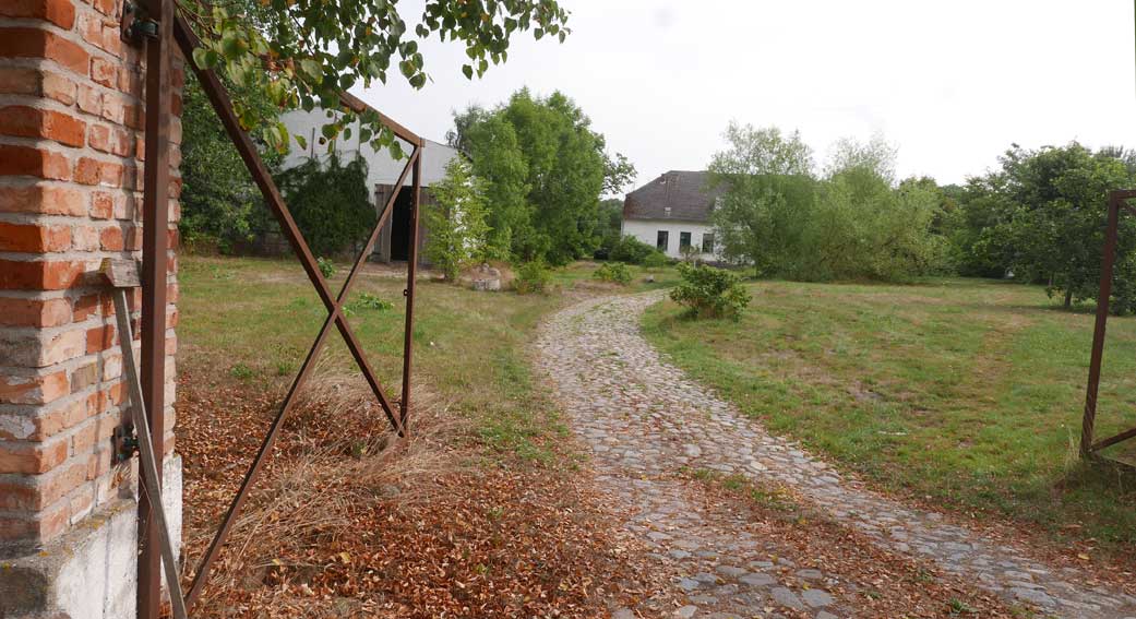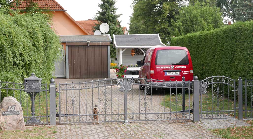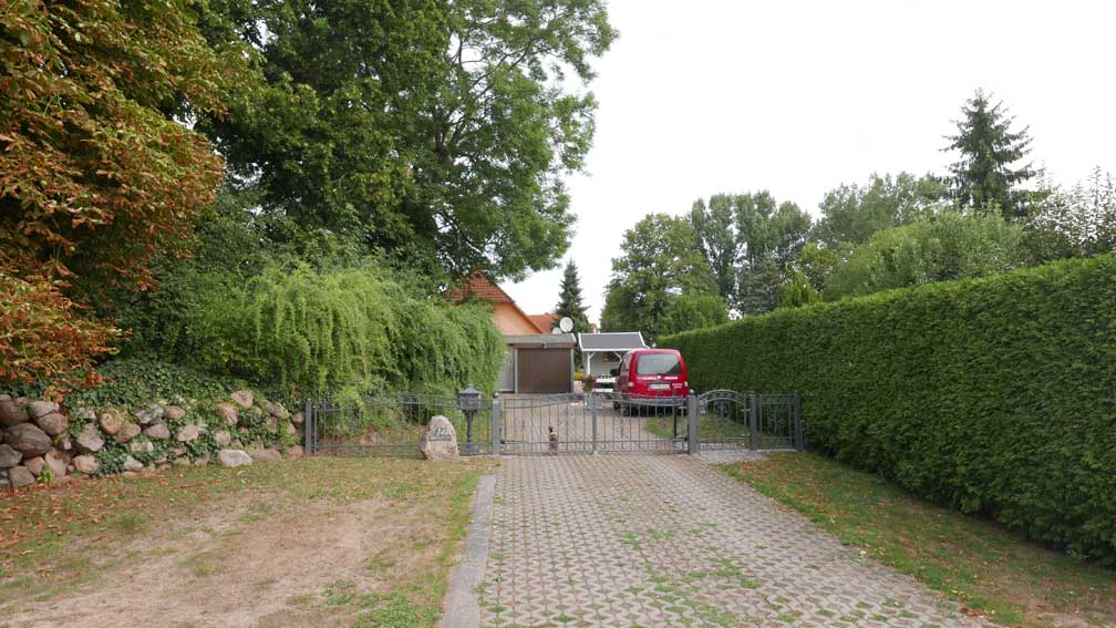 vorbei, vorbei, die wunde Stelle des alten Kirchwegs nun als Garagenauffahrt einer Container-Garage