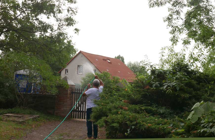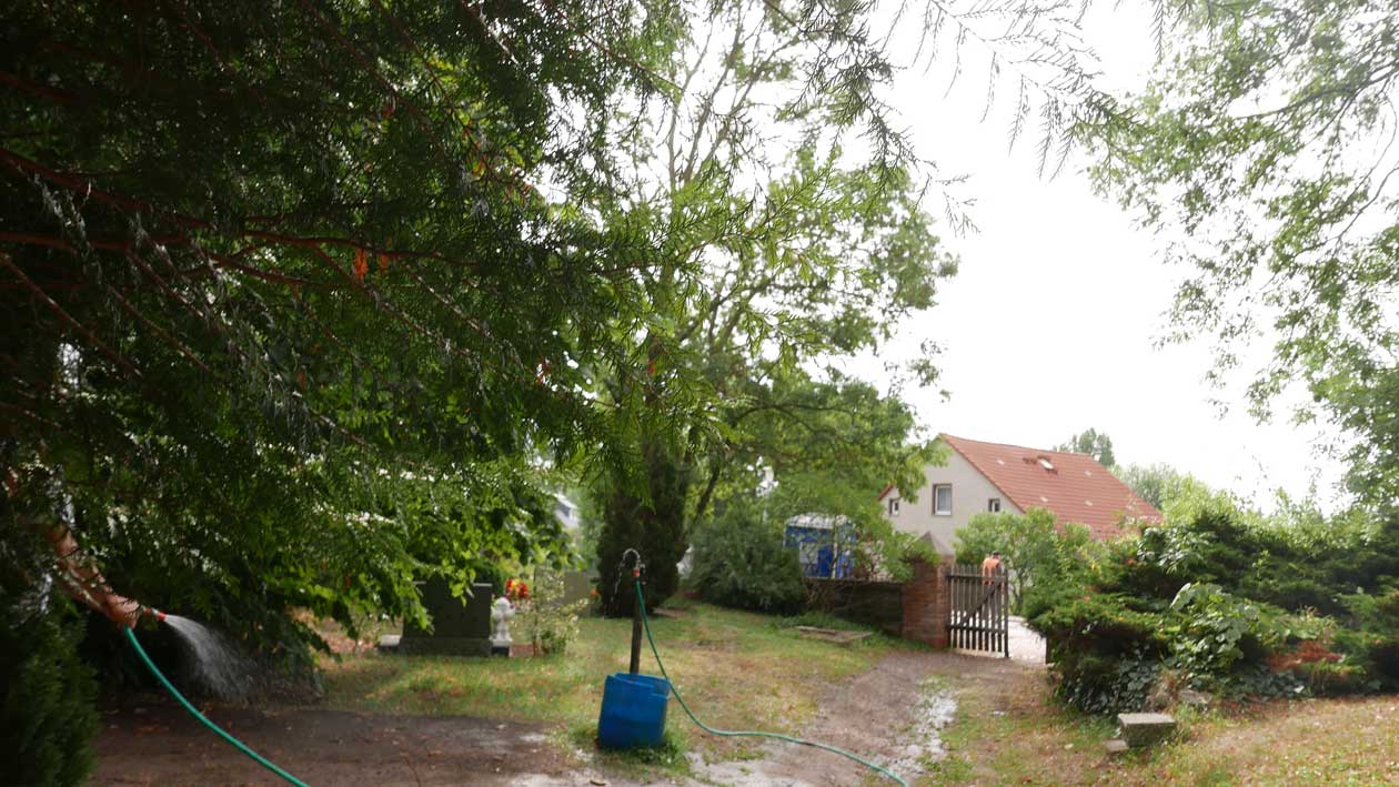 was Nässe braucht machen wir nass den neuen Samen des Grases