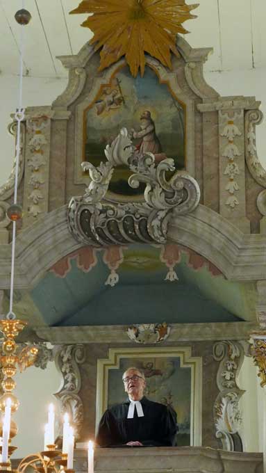 nächsten Sonntag in Nosssendorf Gottes Dienst Bischof Berger als Gast mit Musik aus Tribses