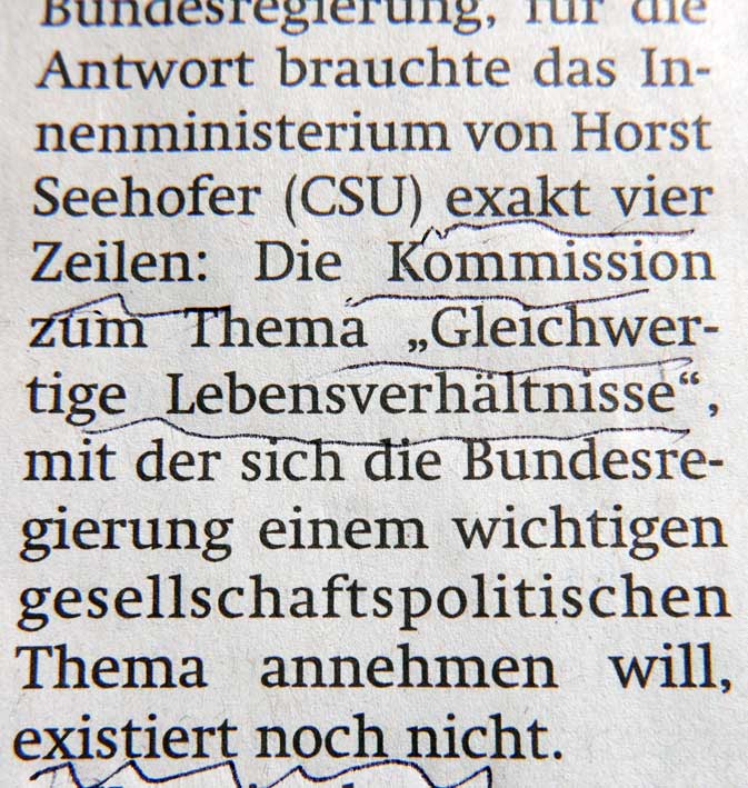 Und erinnern wir uns, woran sie nun gerade arbeiten, im Miniserium heute in Berlin. Ausgehend von der Landflucht, weil das Land die Menschen dort nicht mehr hält. warum. Ihnen "gleichwertige Lebensverhältnisse " schaffend? Das versuchte auch die DDR mit Plattenbautebn, liefen trotzdem weg, auch dort. Also was dann.