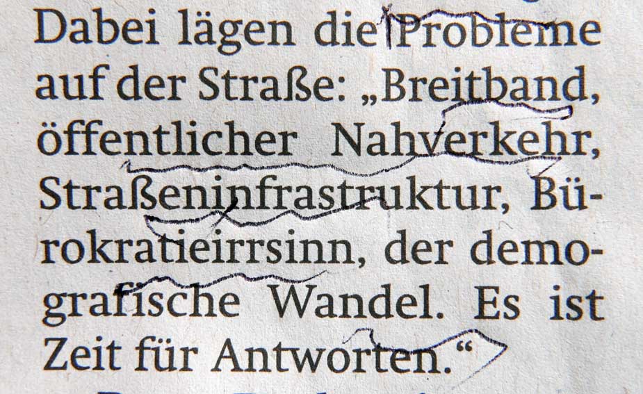 Kauder von der CDU sagt alles läuft. Der Abgeordnete der Linken siehe den hier zitierten Nordkurier, fragt : nichts. Der Staatssekretär von Nordpommern schrieb(Demmin liegt in seinem Bereich), nichts, doch ein Anruf: "später", seit 9 Wochen nichts. Wenn wir die Definition der Selbstverständnisse von Heimat heute allerdings lesen (oben NK), wissen wir warum die Wahlbeteiligung in Demmin zuletzt 19.7 % war.