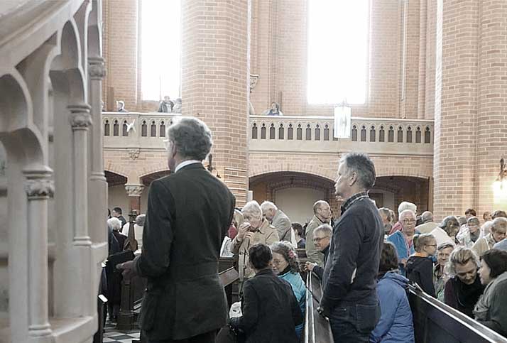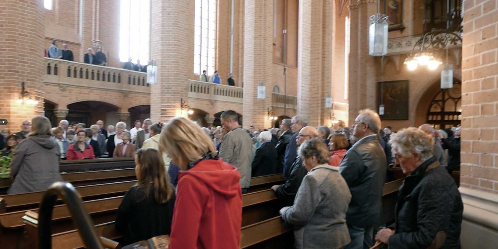 Nun, am Morgen danach. Ist diese Zusammenkunft der Menschen hier in Demmin am Jahrestag der Ereignisse von 1945 zur Musik von Mozarts Totenmesse nicht allein ein Konzert . Jedem und jede Sekunde war wohl allen im Sinn, weswegen sie da waren . Zu denken und sich vorstellend was da geschehen war und nun abzutragen ist . In dieser Stille . Ein Manifest des Bekennens höchster Würde in diesen Tönen und Texten . Viele waren wie zu Fuss gekommen . Mit dem Fahrrad aus Greifswald der Student aus Prag, mit dem Zug die von weiter . Einer aus Japan erzählte, wie er davon erfuhr. Ein Stimme aus dem Chor der Stadt: Es war "das, worauf wir alle gewartet seit Jahren". In Demmin.