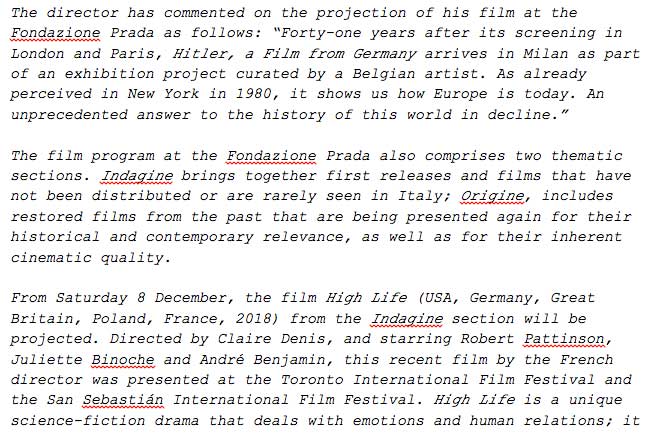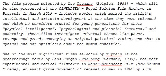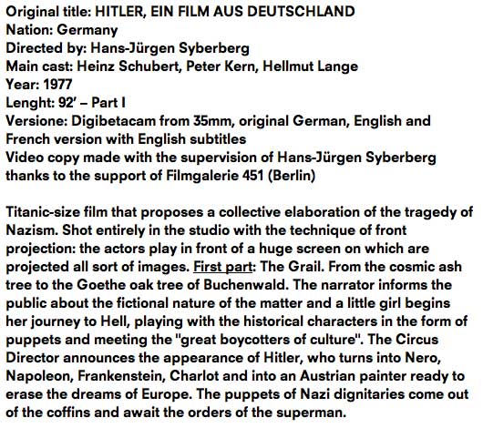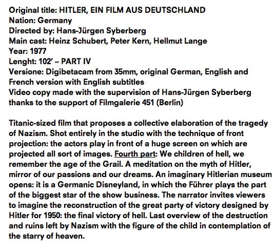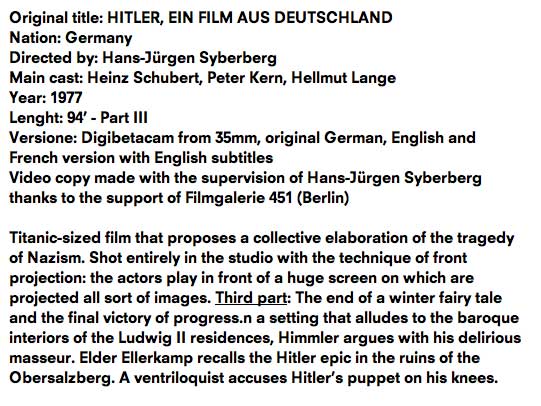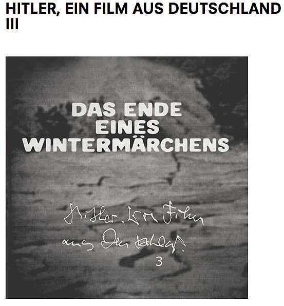 Screenings of “Hitler, ein Film aus Deutschland” (Part I) by Hans-Jürgen Syberberg