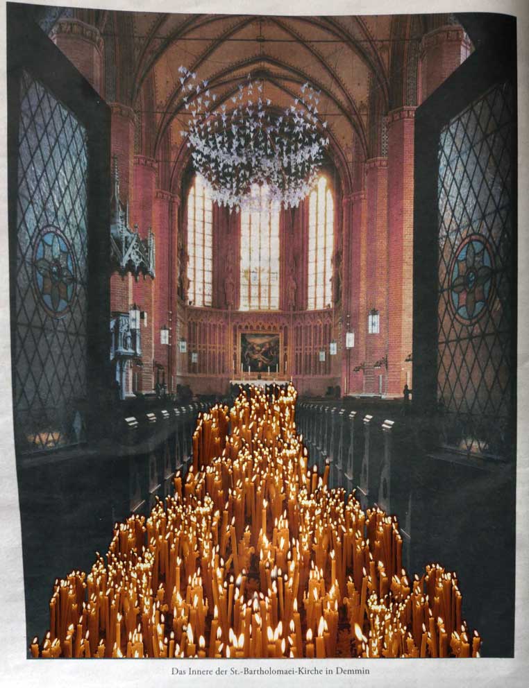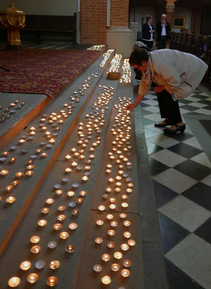 zuerst war da die Idee für jeden der Toten eine Kerze anzuzünden in der Kirche. Nach den Listen der Totenhefte. 1000 Kerzen. Der Kirche und der Stadt selbst übergeben.