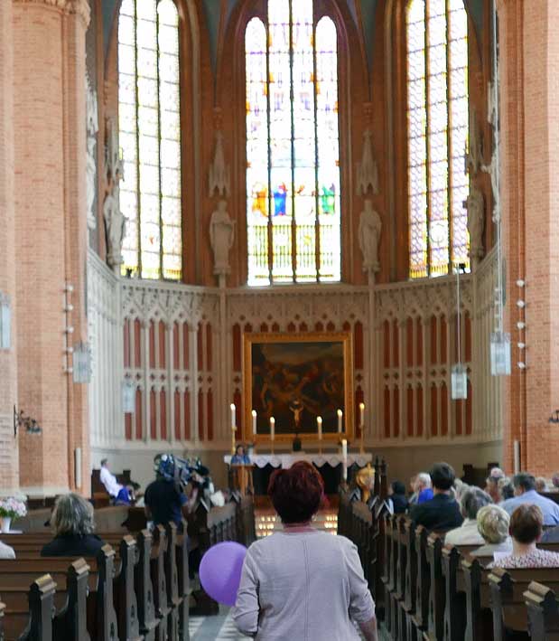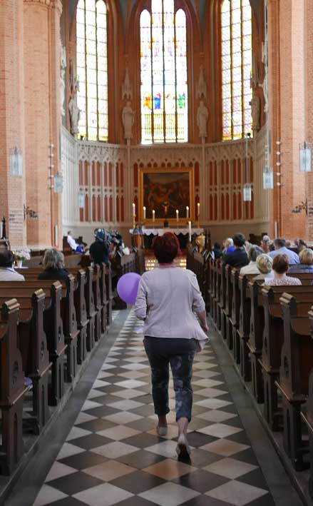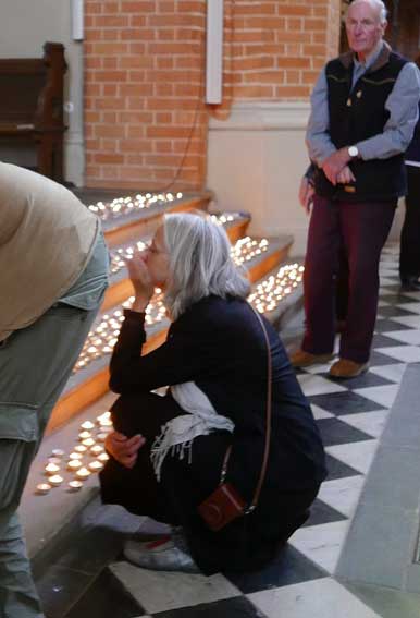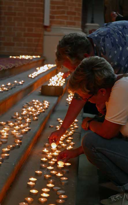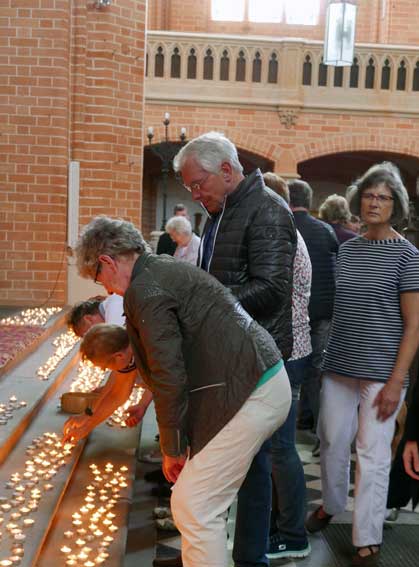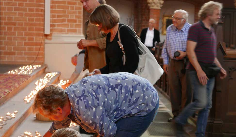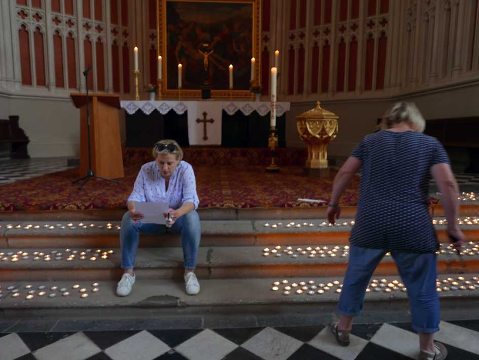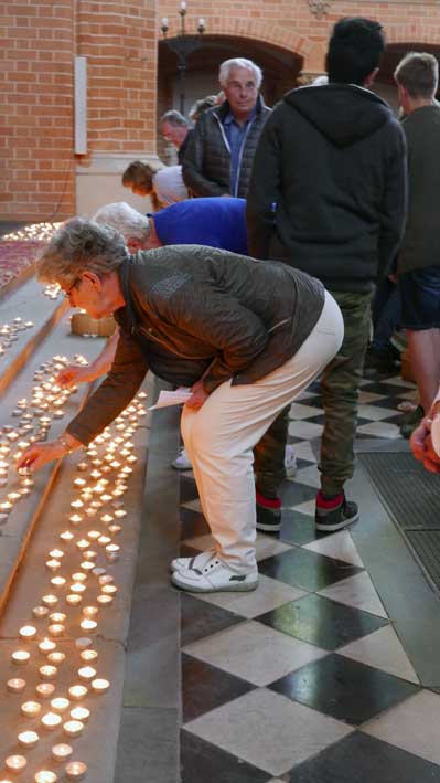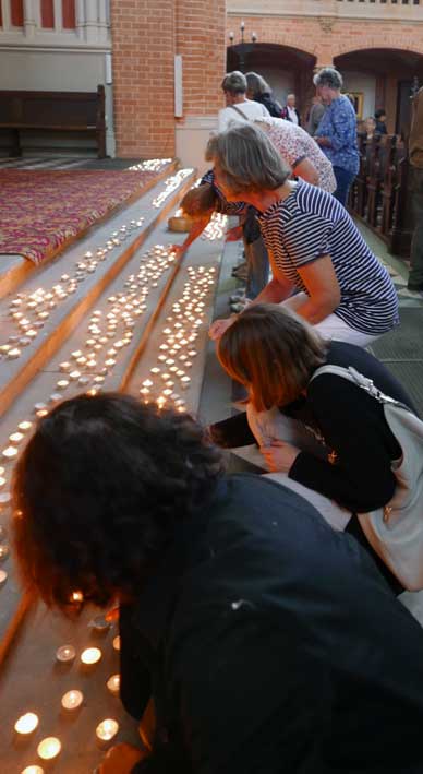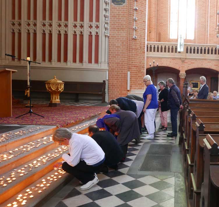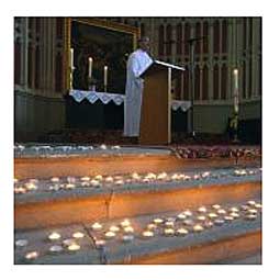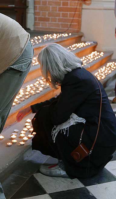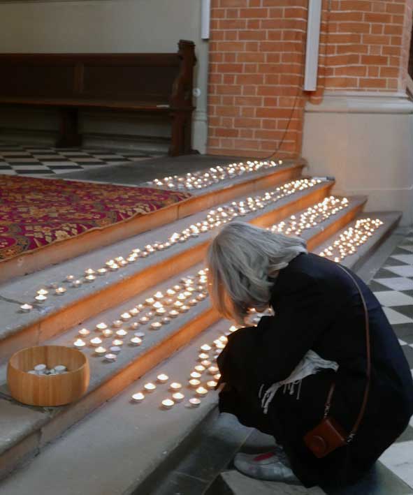 zu dem Füssen des Altars aufgerufen für jeden Namen ihres Gedenkens eine Kerze anzuzünden.