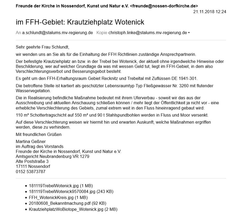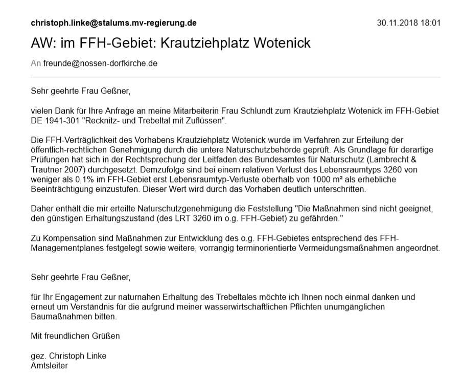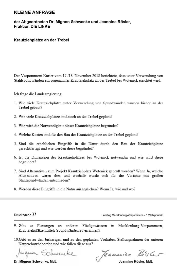 Die Nachricht sagt, dass das im Herbst angelieferte "Kraut" des Ufers (Schilf) nicht am neu und teuer ausgebauten Ufer in Nossendorf geborgen wurde, sondern an der alten Stelle mit flachem Wasserzugang. Weil der Bagger mit seinem Arm nicht über die Steilkante der neuen Anlagen greifen kann ohne den Menschen zu gefährden, der hier arbeitet. Hauptargument war die bessere Sicherung des Arbeitsplatzes. Alles um sonst. So einfach ist manchmal der Beweis von Dummheit und Hybris der Menschen-Zeit gegen die Natur. Die jetzt gebauten Anlagen 4 KM flussabwärts in Wotenick (halb so gross mit 420 000 Euro) sind steiler. Also unbrauchbar. Wer stoppt diesen Unsinn.