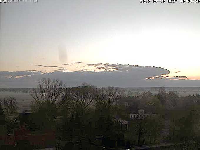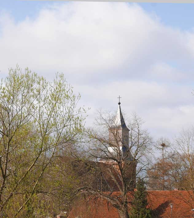 noch ohne Blätter ist der Turm nun vom Haus aus sichtbar
