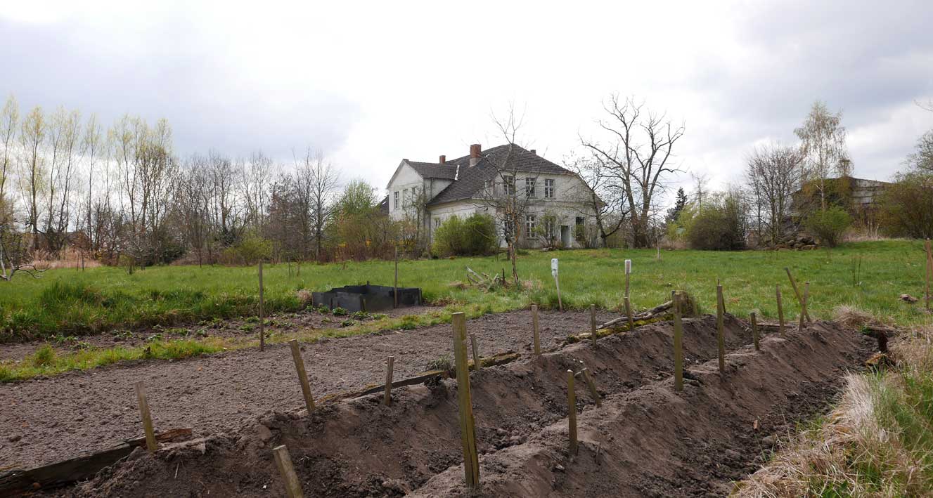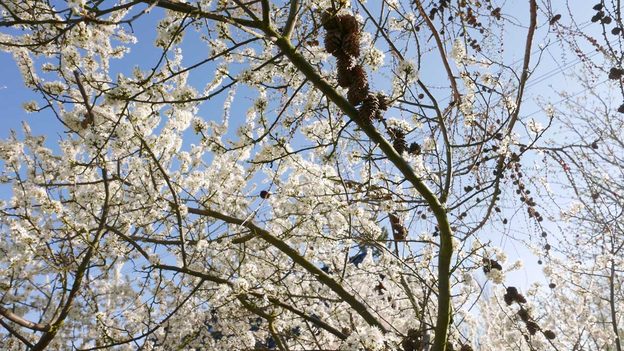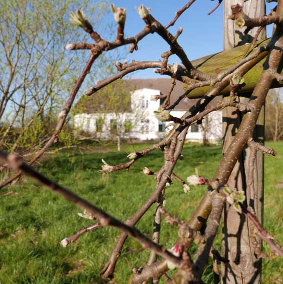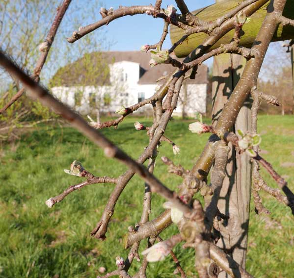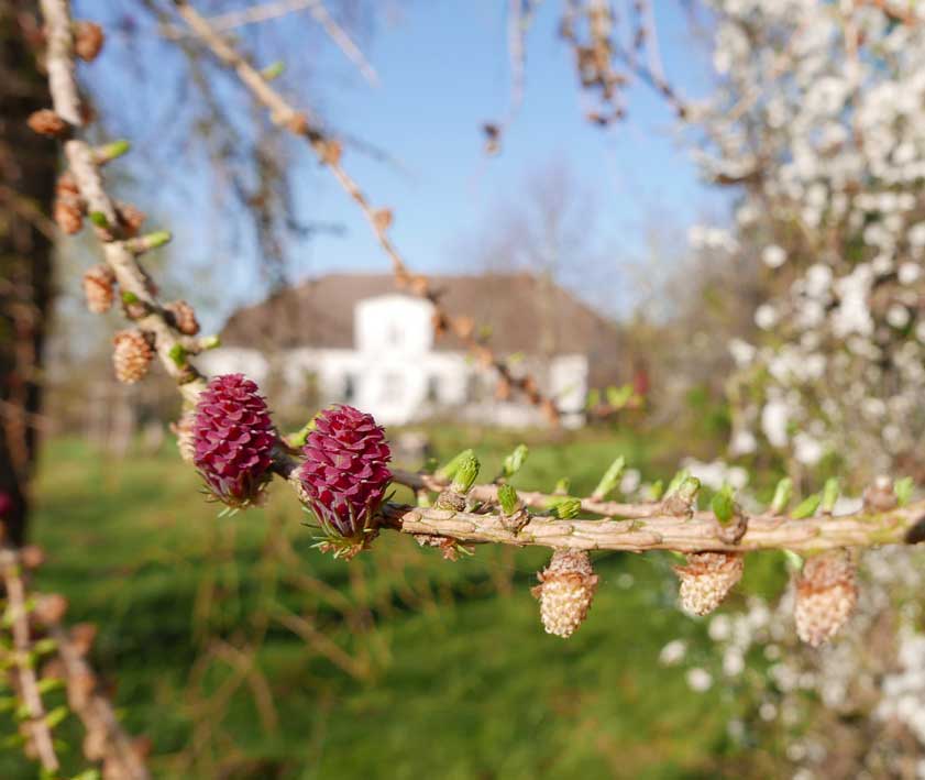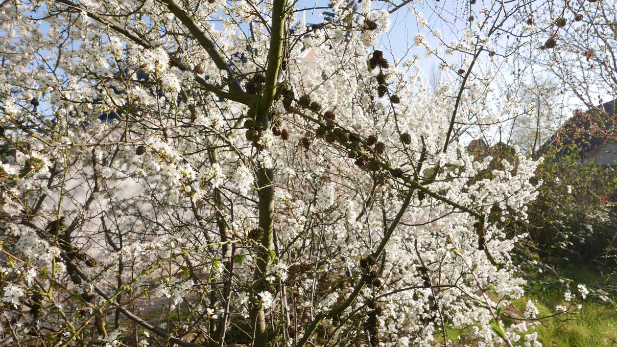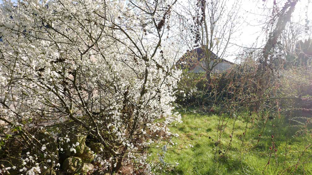 auf der Hofseite die ersten Schleen blühen