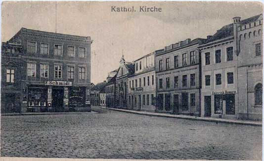 Ein Parkplatz wo früher eine Kirche, die katholische, war und dann ein Kino bis 45.
