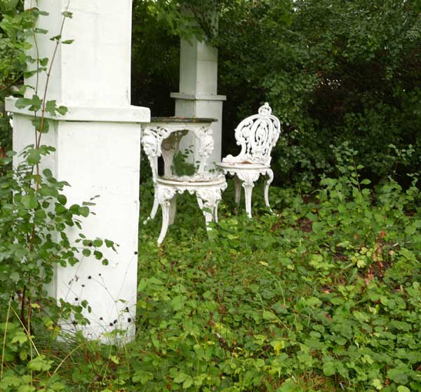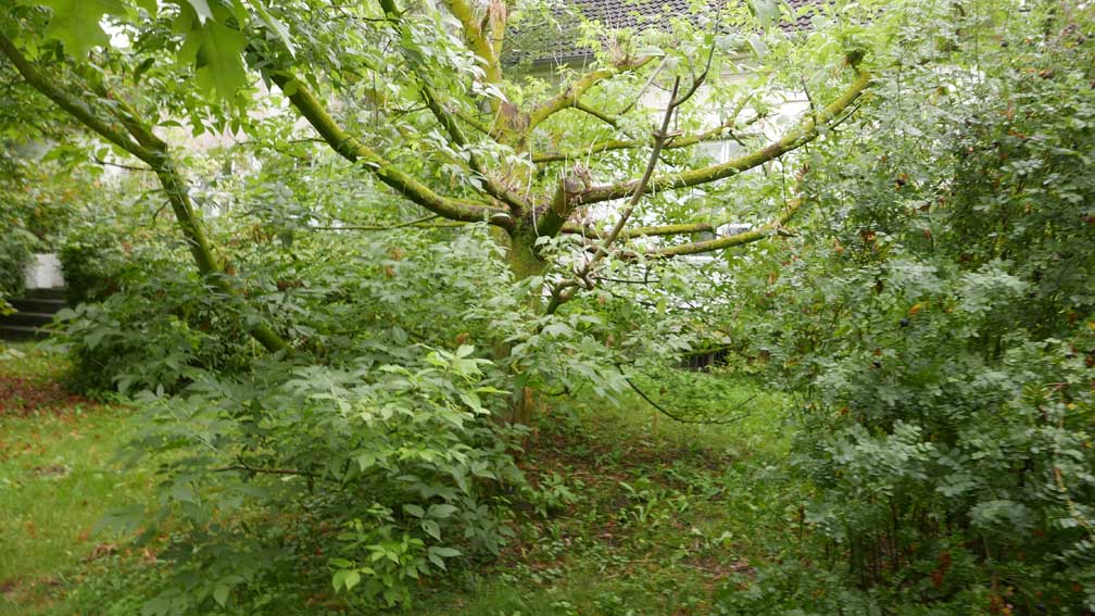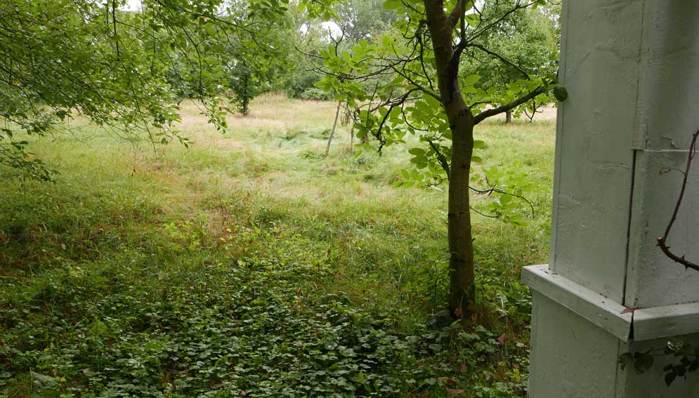aber so doch umgeben nun von allen Seiten dichtgewachsenen Wänden aus Bäumen und Hecken, die es zu verteidigen gilt. Und im Winter ausgestopft gegen die Kälte.