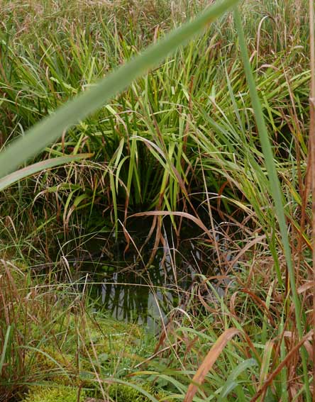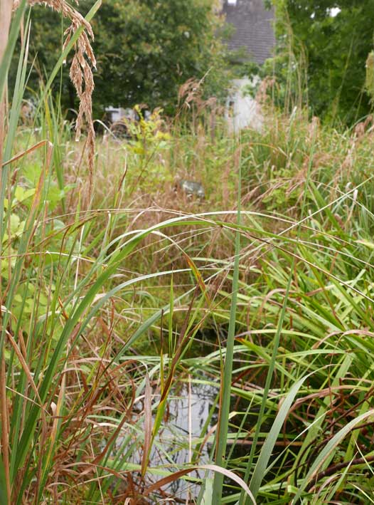 Das Regenwasser des Daches aufgefangen im von uns geschaffenen Teich bevor er abfliesst Richtung ehemaligen Graben, der nun ein Rohr ist.