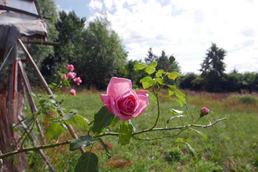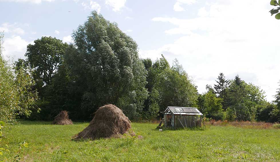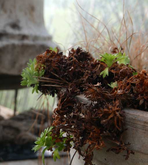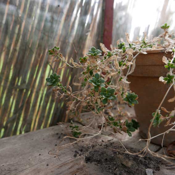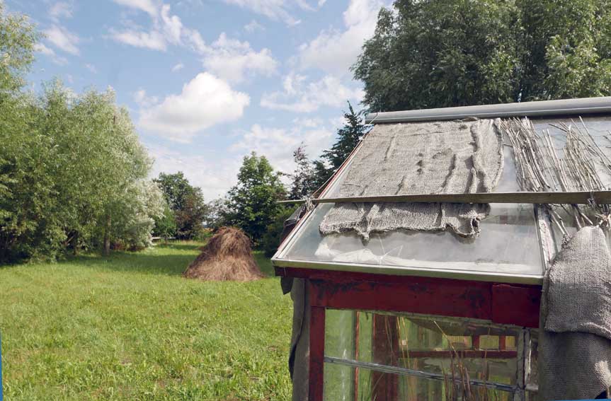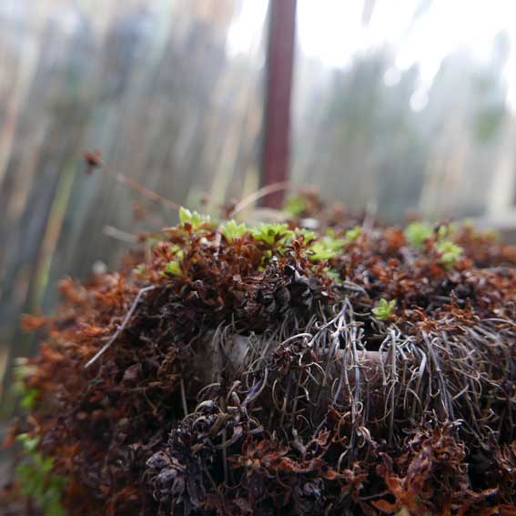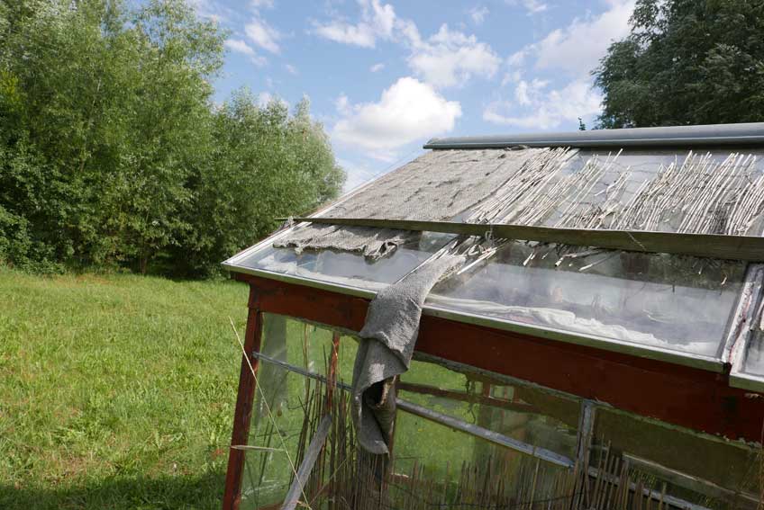Diese Hütte aus Glas nun wird im Sommer ohne Schatten auf offener Fläche über 40 Grad die Pflanzen prüfen aber immer wieder erscheint neues Leben aus etwas Wasser und solange die Nächte kühlen.