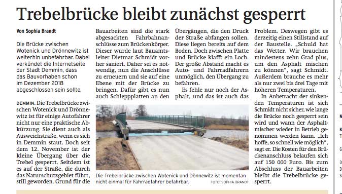 uns beschäftigen diese Trebel-Vorhaben; mir kam der Gedanke, dass all diese Maßnahmen vielleicht auch mit dem Autobahn-Loch (A 20) und dem Absacken des Geländes dort in Verbindung stehen könnten;