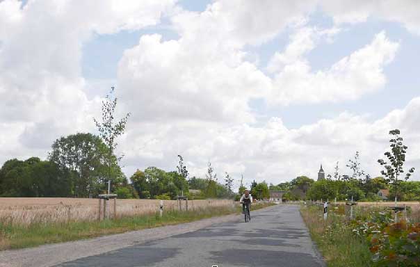 Hier stan noch bis vor einem Jahre eine Alle von über 120 Pappeln und einen Hau-hohe Hecke , teilweise beidseitig aus Eichen, Hainbuchen, Weisen plus Hollunder und Schleen, die Wildrosen(rosa canina, uns soviel mehr