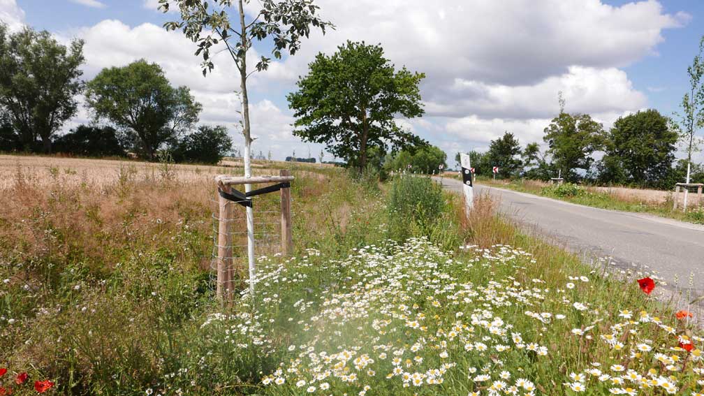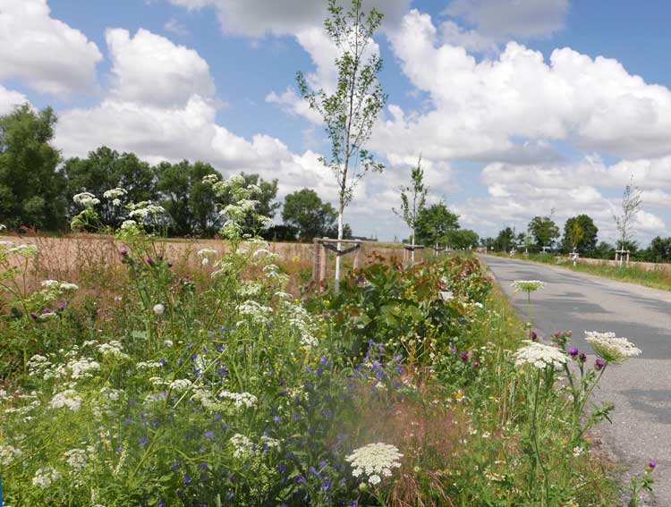 gesetzten Sträucher an der ehemaligen Pappel-Allee von Nossendorf nach Volksdorf wachsen wieder.