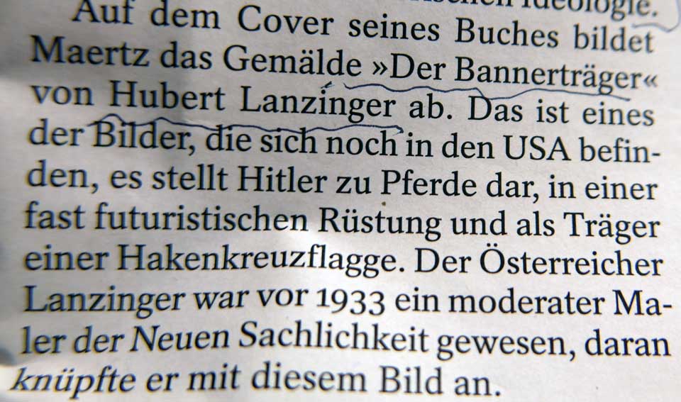Der so abgebildete Hitler liebte dieses Bild nicht. Er liess es abhängen. Für den Maler Hubert Lanzinger und seine Landschaften und Porträts sollte das heute gut sein.