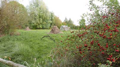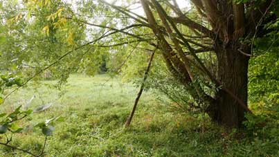 Ein neuer Graben wieder anstelle des Rohrs wäre komplizierter. Durch Befragung der angrenzenden Flächenbesitzer und eines neuen Flurfeststellungsverfahren mit dem technischen Aufwand eines Schöpfwerks zur Erhöung des Grabens für eine geringerer Dimension, entsprechend dem geringen Anfall an Wasser, und wegen komplizierter Pflege unter Bäumen, wird aber von unserer Seite nicht gundsätzlich abgewehrt, wenn auch auf unserem Grund dann. Das alles war vor dem Pflanzen der Bäume angeboten, was ohne Vorlage von Lageplänen des Rohr, trotz ständiger Anforderungen dann unter Kenntnis der technischen Abwehrmassnahmen entstand.