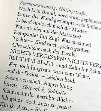 … Zwei und zwanzig, Höringstraβe. Haus nicht verbrannt, doch zersaust, und ausraubt.