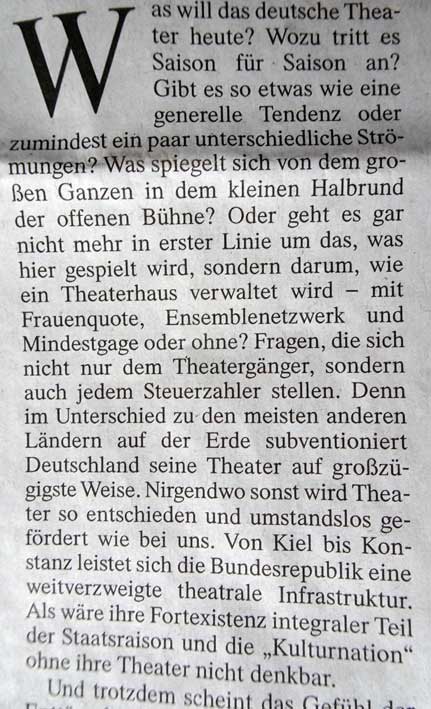 Vielleicht auch der Reife der Zeit. In einem Umfeld günstig solcher Tat auf den Bühnen. Sonst haben sie keine Chance.Voraussetzung ist hier wie in allem sich zu versöhnen mit der Natur und der Geschichte aus der wir kommen. Ohne sie sind wir verloren.