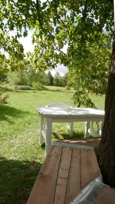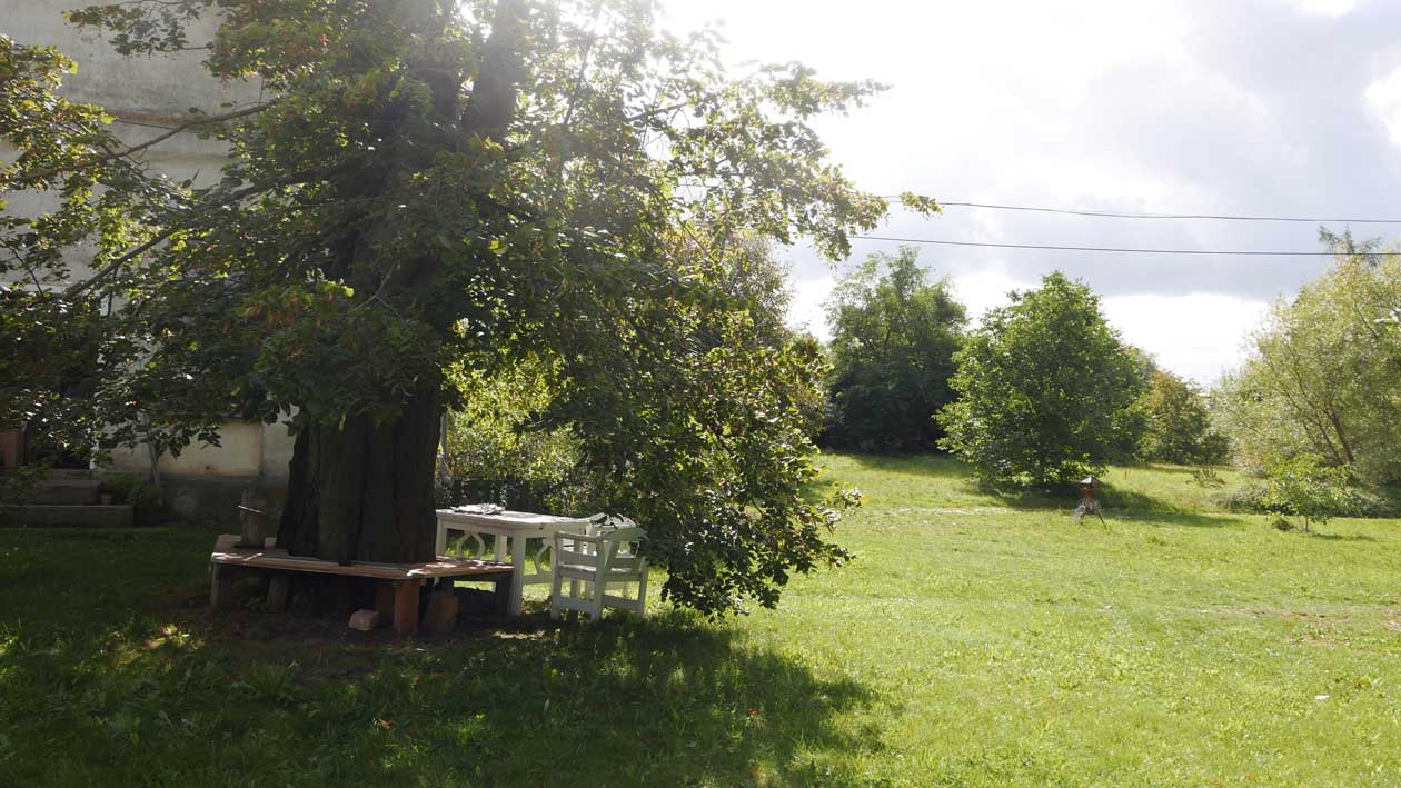 es ist dort, wo um die Linde nun gerade weiter die Bank ausgebaut wurde