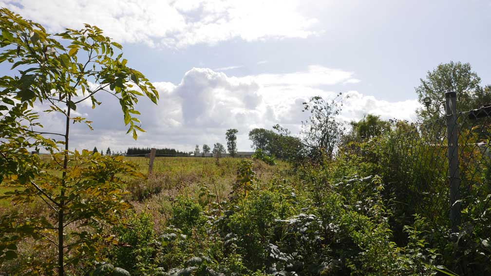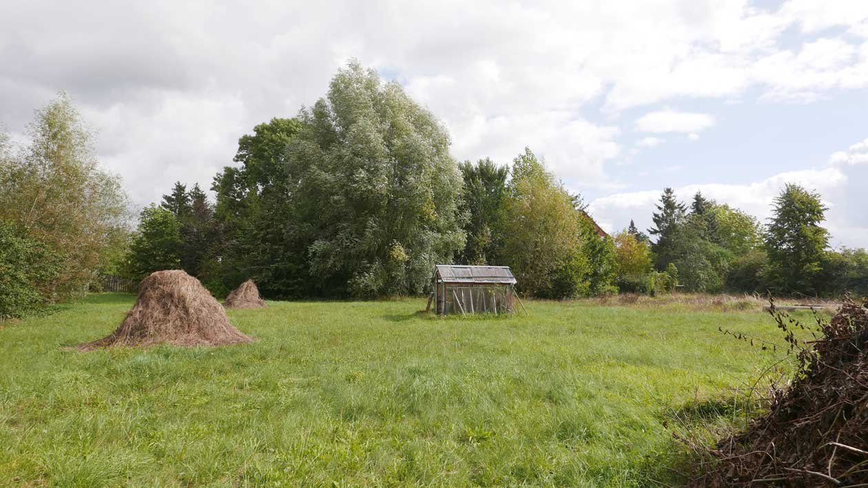 Man braucht es nicht, die Wiesen links ohne Dränage hinein, und die Gärten rechts haben andere Sorgen