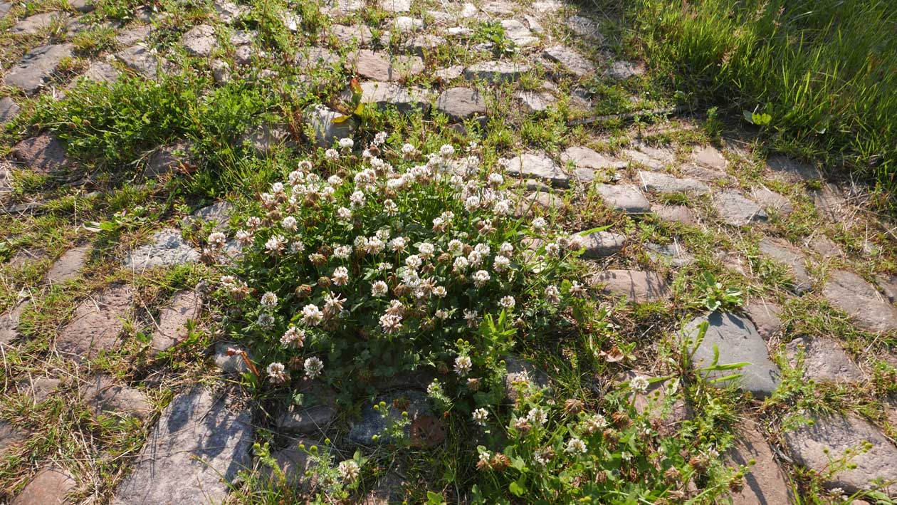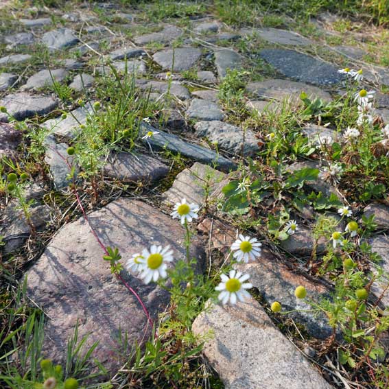 klein am Rand, darüber zu fahren, zwischen Rädern und Schritten, wenn wir da gehen und doch sind sie da.