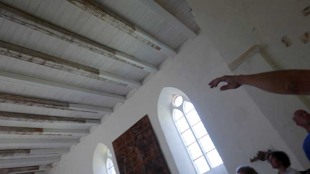 und darüber nun das Dach und vielleicht noch der Alter wieder wie er war. Innen Apsis zuerst mit dem Team aus dem Haus und die Decke von den Freunden in Berlin und