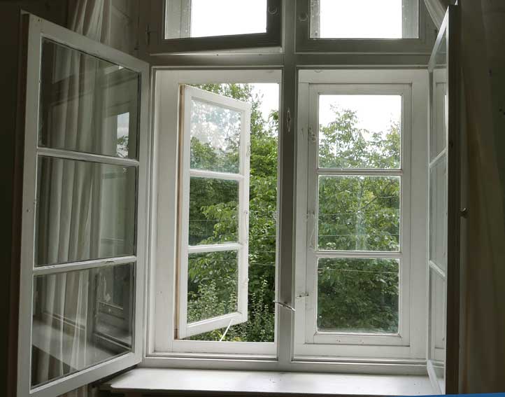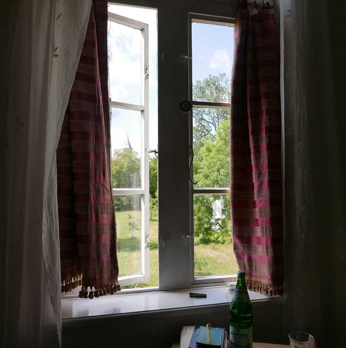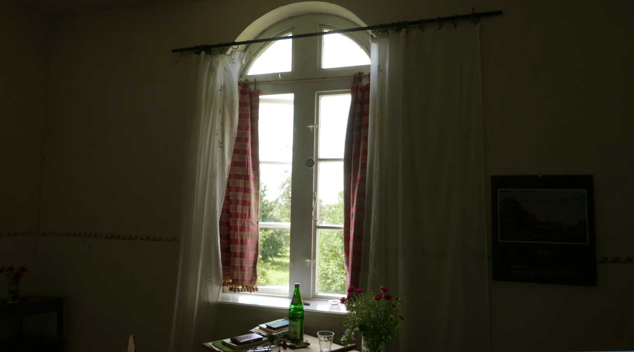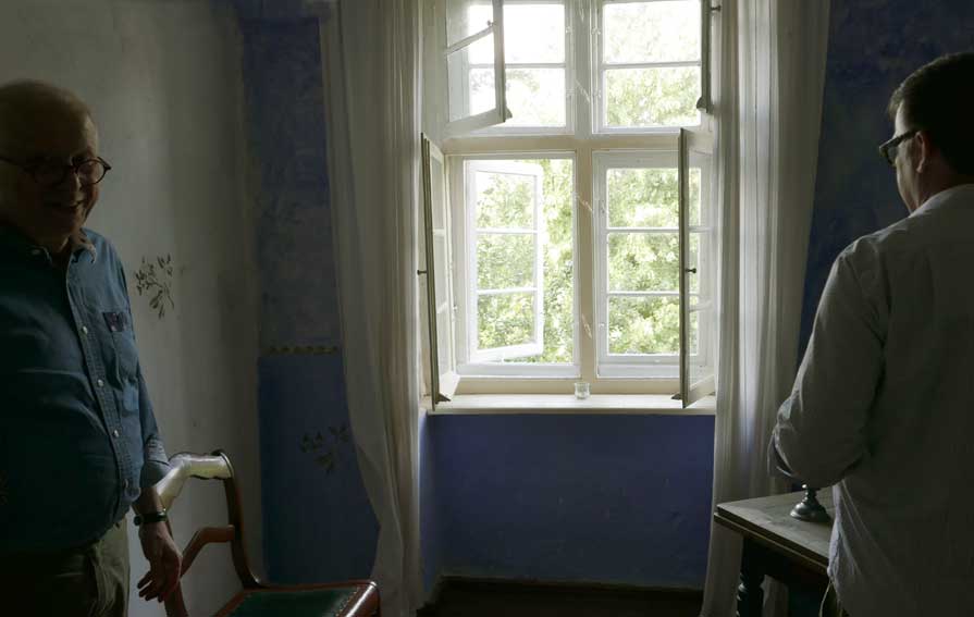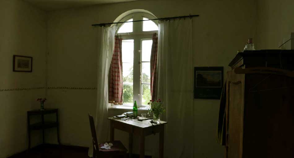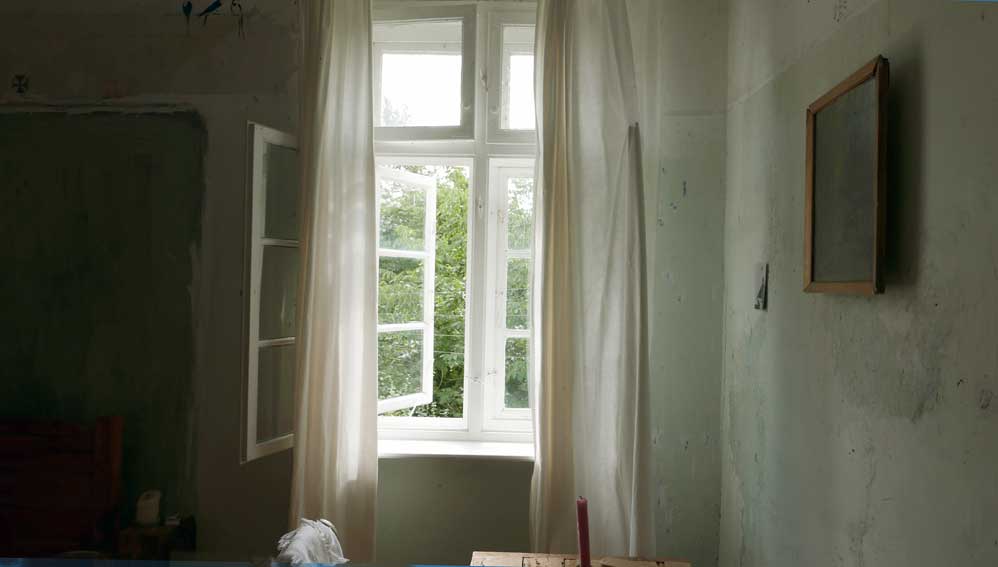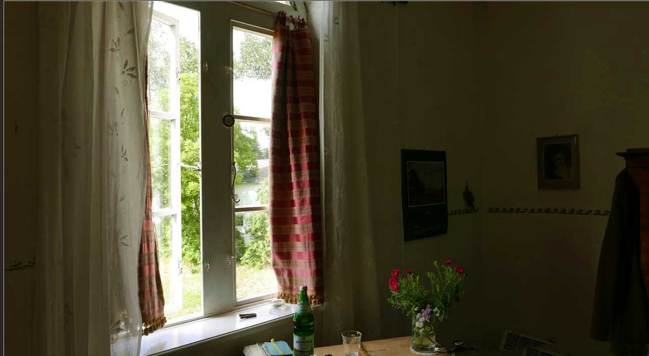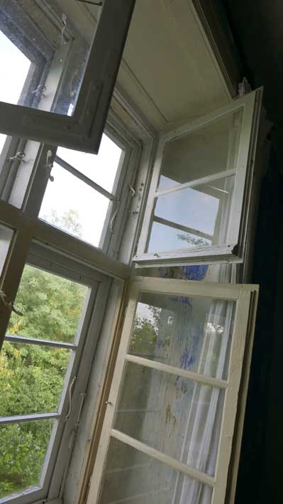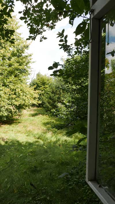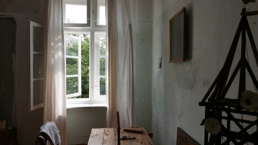 anders im Kinderzimmer das ehem. Storchen-Fenster des verbotenen Blicks der Kamera auf den ehem.Kaphof wie das Grün wieder entstand, aus Paris neu geweiht im Center Pompidou.