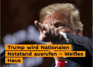 Im Streit über eine Mauer an der Grenze zu Mexiko wird US-Präsident Donald Trump einen nationalen Notstand erklären. Das erklärte das Weiße Haus. Laut Trumps Sprecherin will der Präsident damit die Krise der nationalen Sicherheit und die humanitäre Krise an der Grenze stoppen. Außerdem teilte Sarah Sanders mit, dass Trump zugleich ein Haushaltsgesetz unterzeichnen werde, auf das sich Demokraten und Republikaner in langen Verhandlungen geeinigt haben.