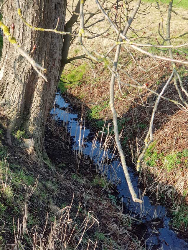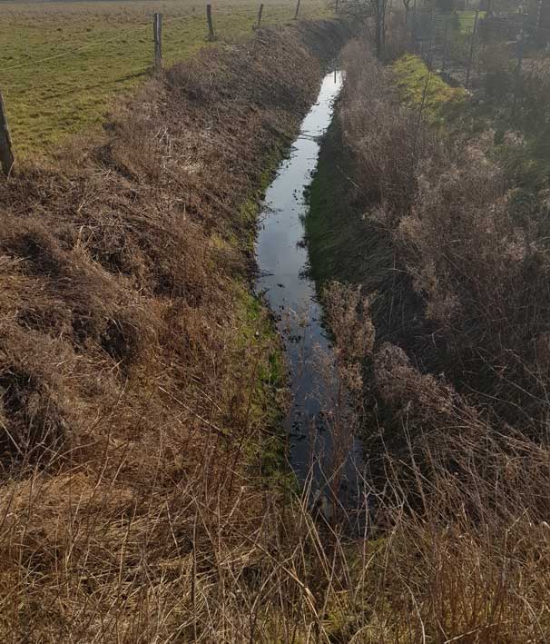 Der Graben bevor er zum Rohr wird und wenn danach aus dem Rohr er wieder zum Graben. Mit stehenden Wasser. Für das Rohr dazwischen soll der Park weg. Das Gericht wird entscheiden. Über die Zukunft als LPG Norm oder Leben.