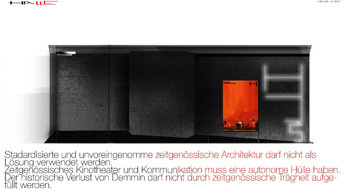 I believe modern architecture cannot be used a simple solution for everything, and the halle must be a new solution, the historical recosntruction of demming cannot just have a simple and modern architecture that can work for everything but something completely different.