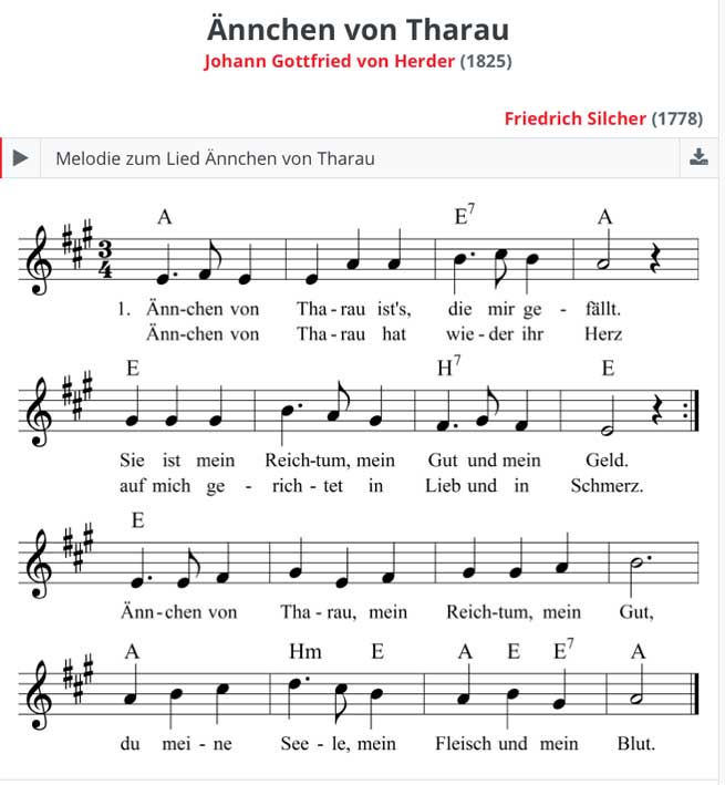 Ännchen von Tharau Variante nach orig. Druck