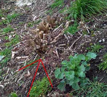die Wurzelstöcke erkennbar markiert