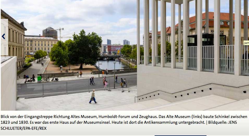 Da haben sie nun das Schloss gegenüber das sie Humboldt Form nennen und er kommt nicht vor. Dazwischen brüllender Verkehr als ob sie wüssten was sie trennt. Alles die im Rücken, wenn sie dem Anderen nunauf steilen Treppen sich nähern.
